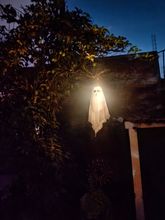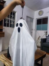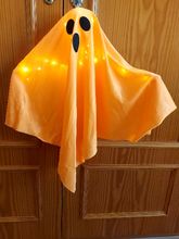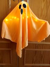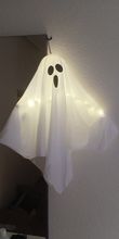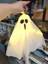 small but great! easy to set up. lights have 3 different settings. looking forward to hanging this little ghost up for Halloween. very happy with my purchase - thank you.