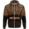 Harajuku 3D Printing Mexico Skull Aztec Warrior Flag Zip Up Hoodies Men Mexican Coat Of Arms Graphic Zip Up Sweatshirts Pullover