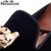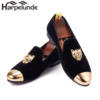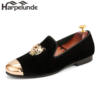 Harpelunde Animal Buckle Men Dress Shoes Black Velvet Loafers With Gold Cap Toe Size 6-14