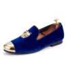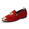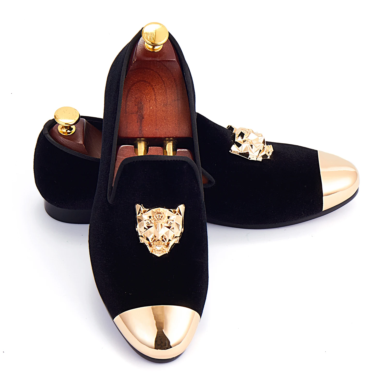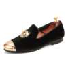 Harpelunde Animal Buckle Men Dress Shoes Black Velvet Loafers With Gold Cap Toe Size 6-14