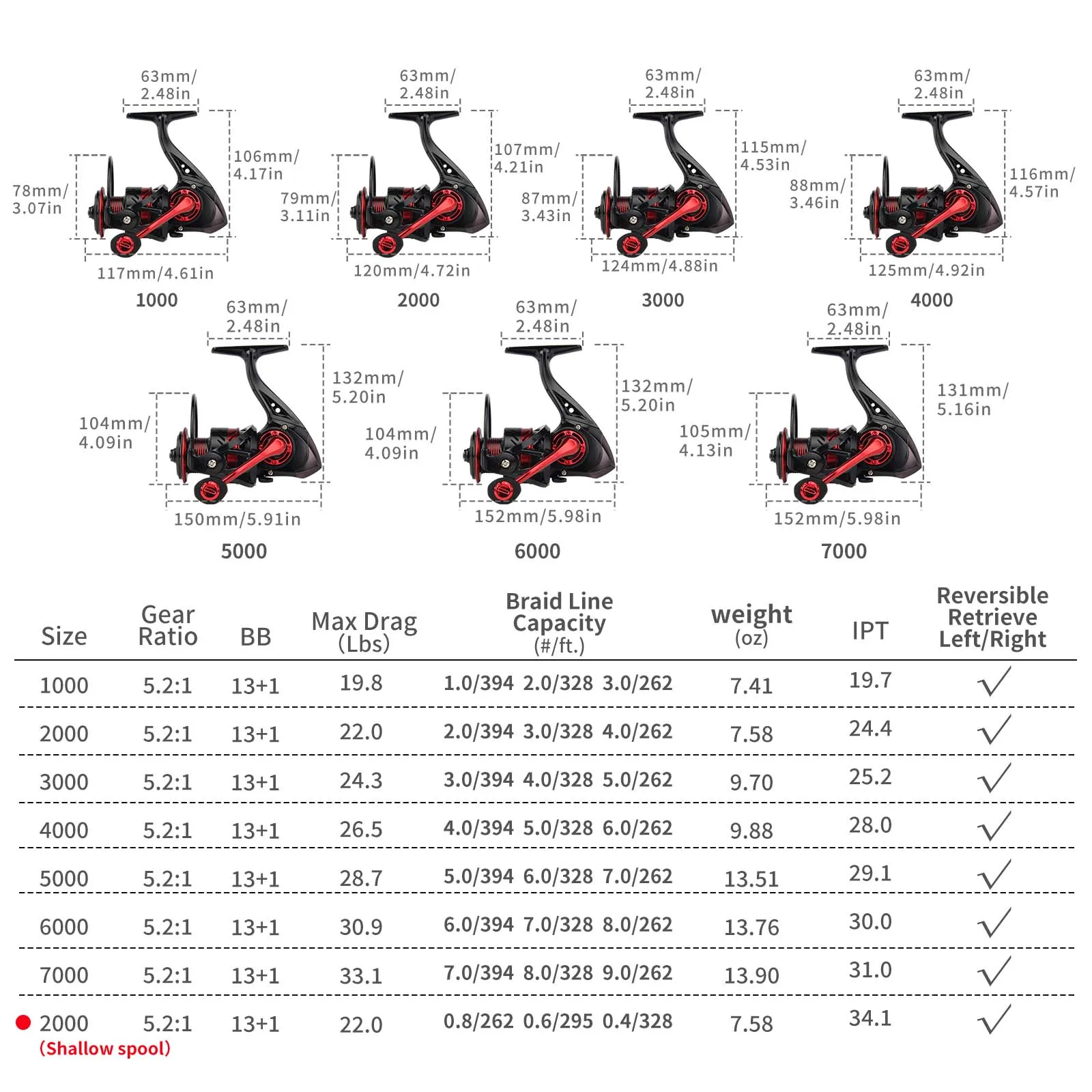 HAUT TON 1000-7000 Series Spinning Reel, 5.2:1 Gear Ratio 13+1BB Fishing Reel, Max Drag 10KG, For Saltwater Freshwater Fishing