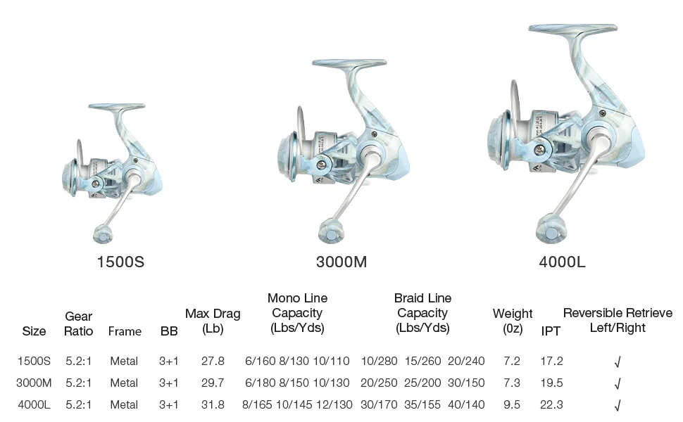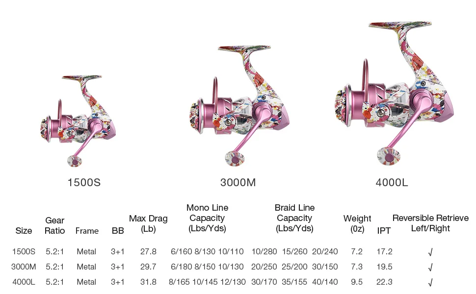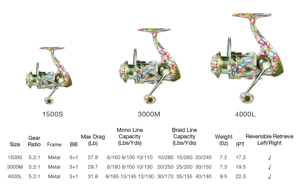 HAUT TON GRAFFITI 1500S/3000M/4000L Spinning Fishing Reel 5.2:1 Gear Ratio 3+1BB 27.8-31.8Lbs Max Drag For Feshwater Saltwater