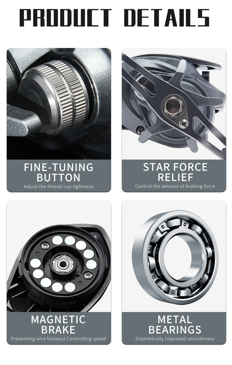 HAUT TON Silver Wings Baitcasting Reel 7.2:1 Gear Ratio Smooth 22 Lbs Drag System Stainless13BB Ideal for Freshwater Saltwater