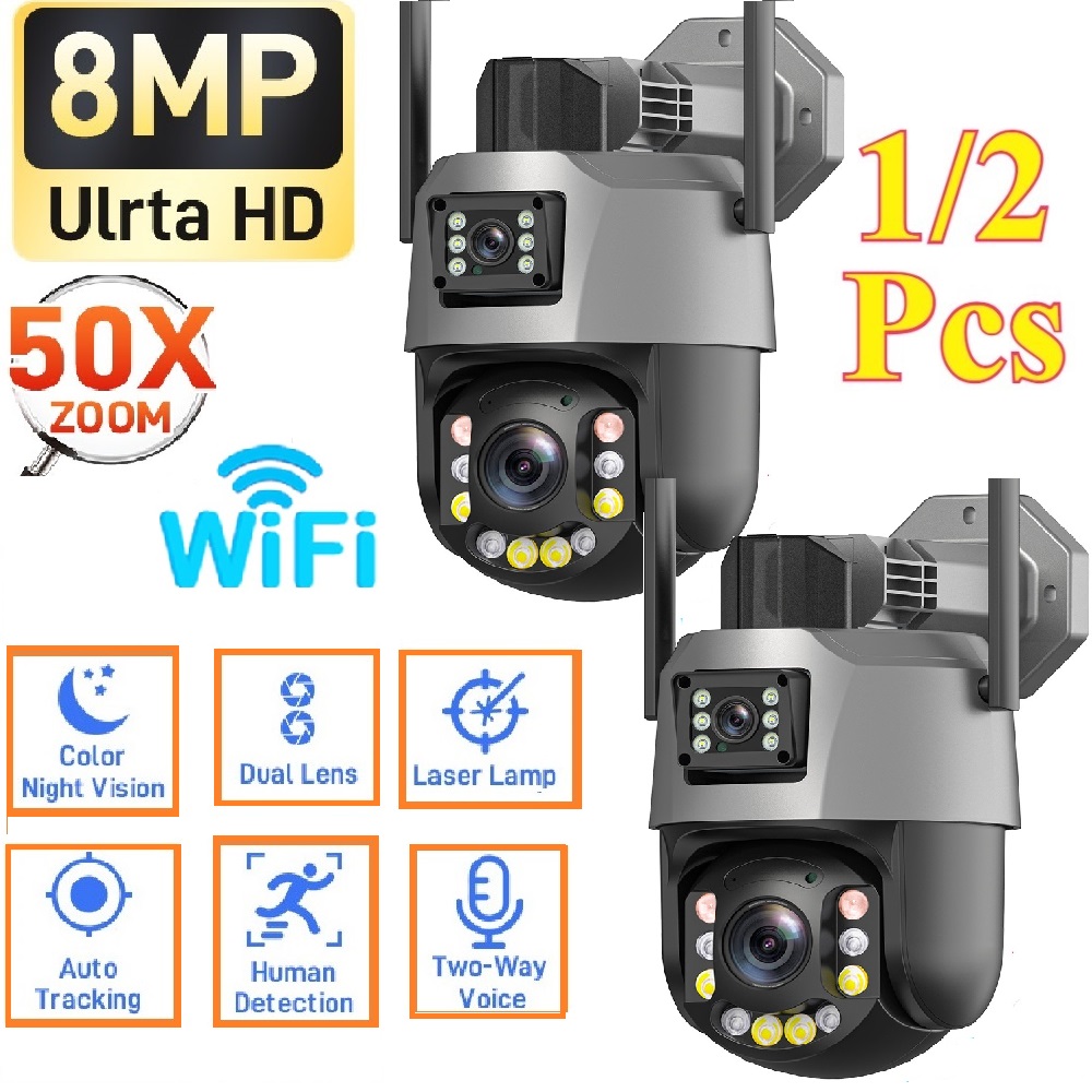 HD 20X/50X Zoom Wifi PTZ Camera Outdoor 8M 4K Dual Lens Dual Screen AI Auto Tracking Colour Night Vision IP Security Camera