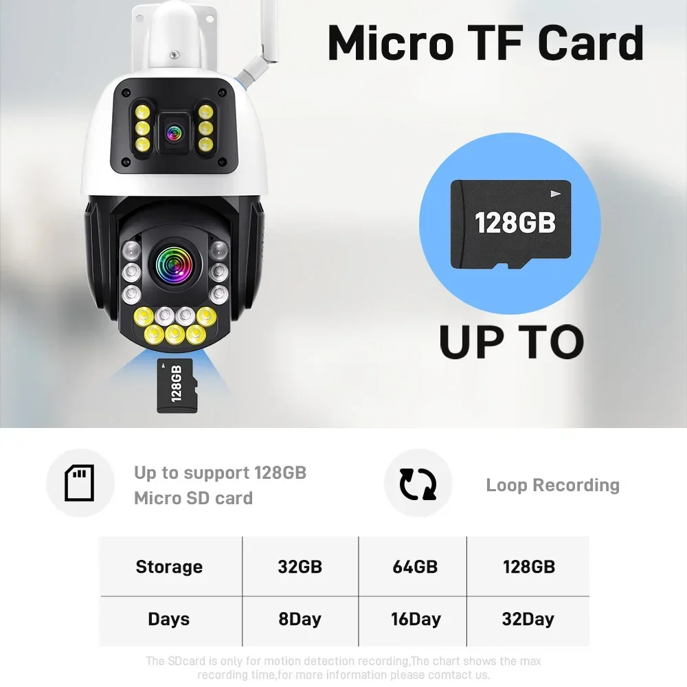 The camera supports up to 128GB TF card local backup and also provides cloud storage service(Need to pay extra cost)