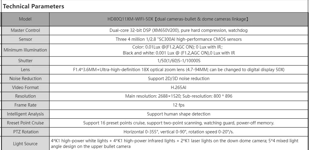 * 50x zoom autofocus lens,Proportional zoom function,rotation speed can be adjusted automatically according to zoom multiples