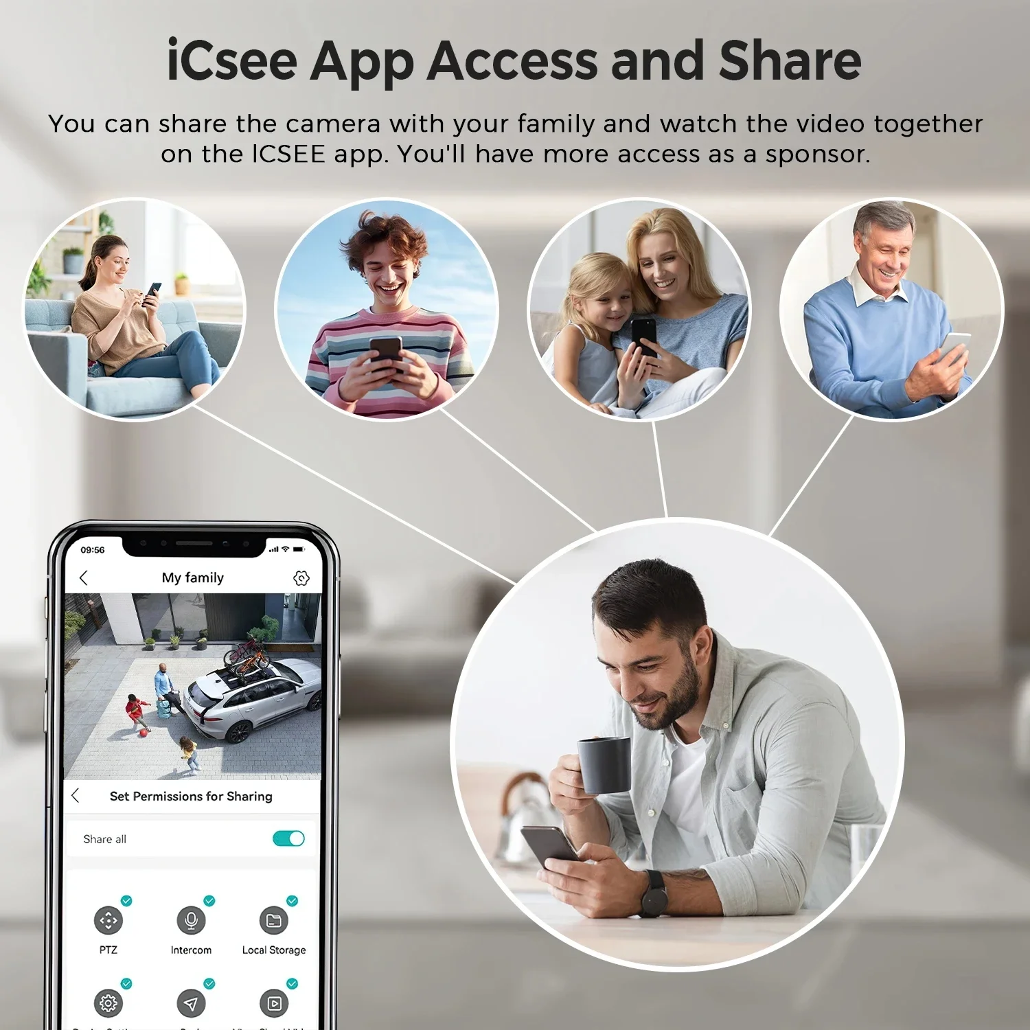 You can share the camera with your family and watch the video together on the lCSEE app, You’ll have more access as a sponsor.