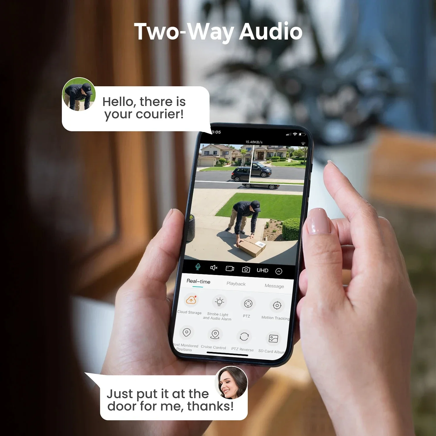 Built in microphone and speaker,support real time video,which allows you talk with your visitor in real time wherever you are.