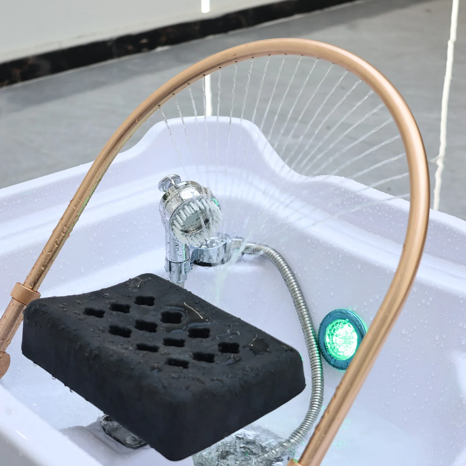 1: No need to connect a water pipe, water enters from the shampoo basin and pours out from the built-in drainage box.