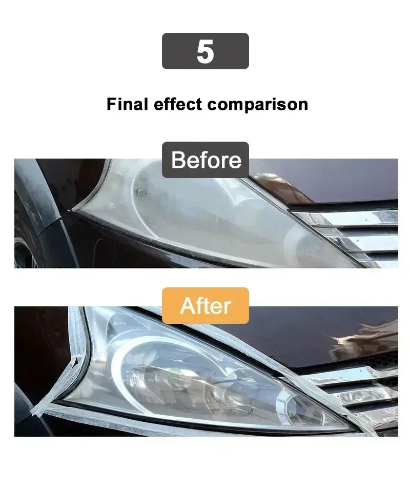 2,【Effective Protection】Headlight Restoration Spray has a super-hydrophobic self-cleaning glass coating that acts as a protective barrier on the surface of the headlight.