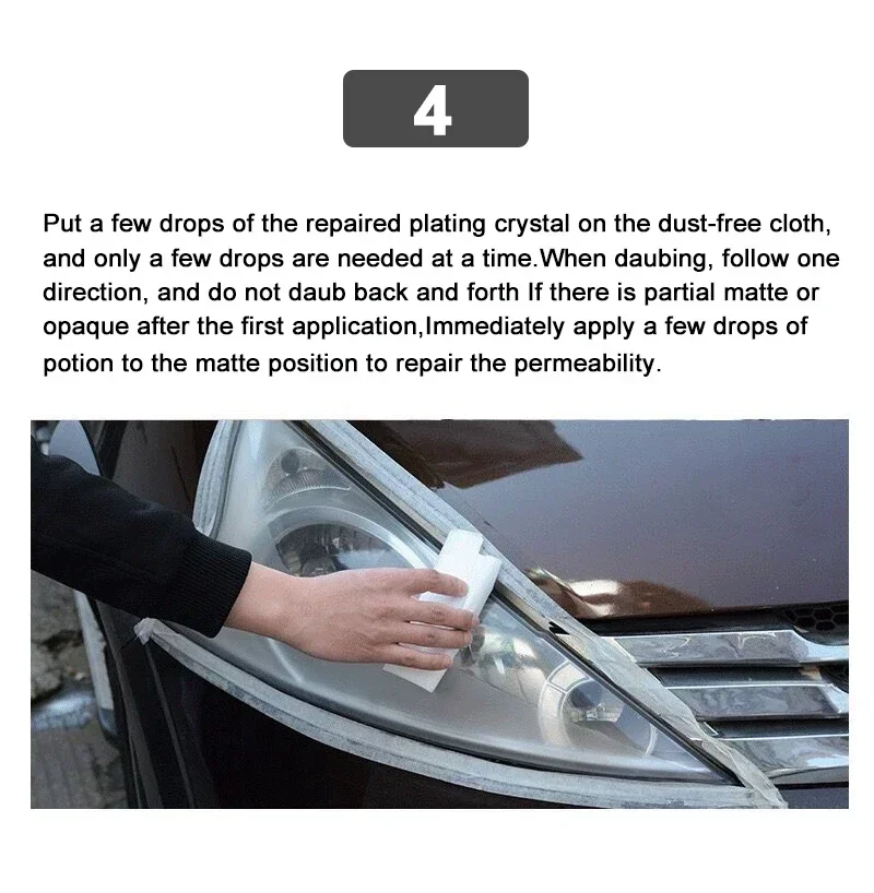 5,【Wide Use】Car Headlight Repair Liquid has wide uses. And it is usually suitable for car headlights, windows, brake lights, fog lights, turn signals, and reversing lights.