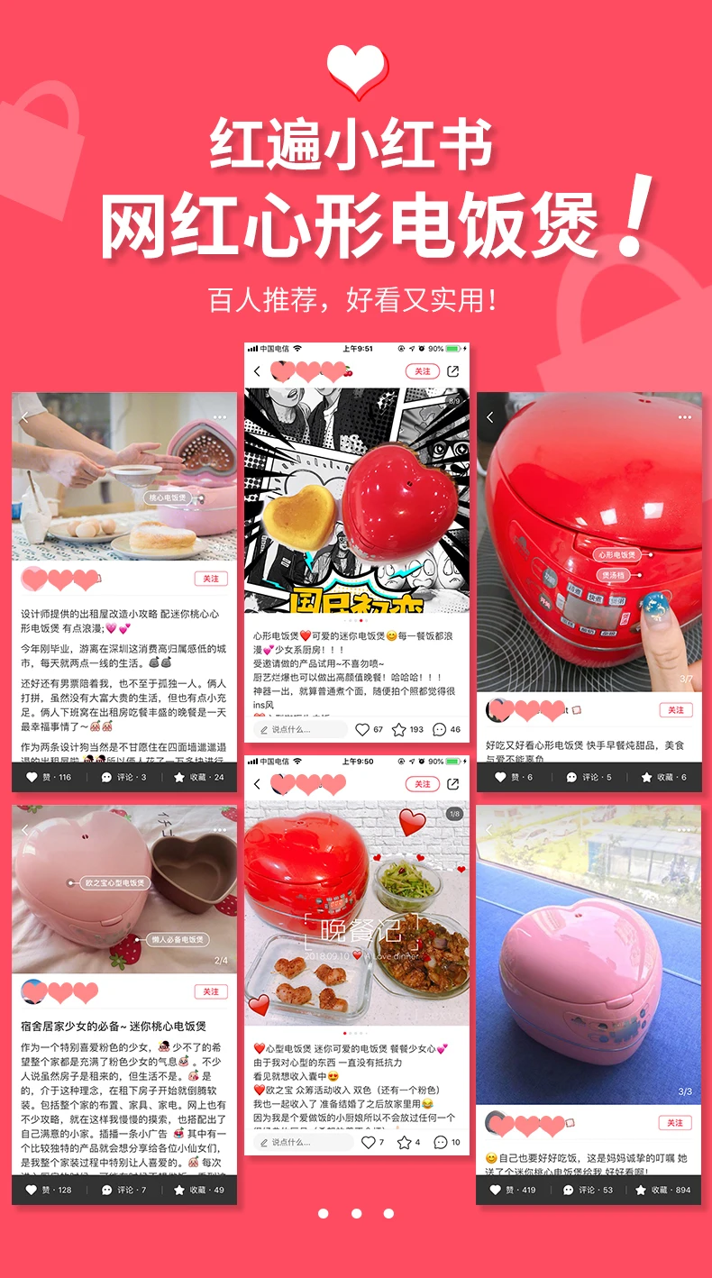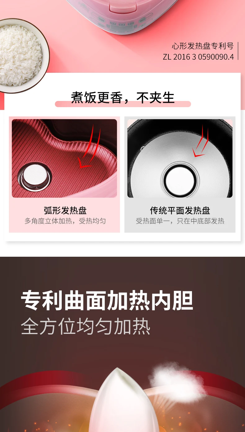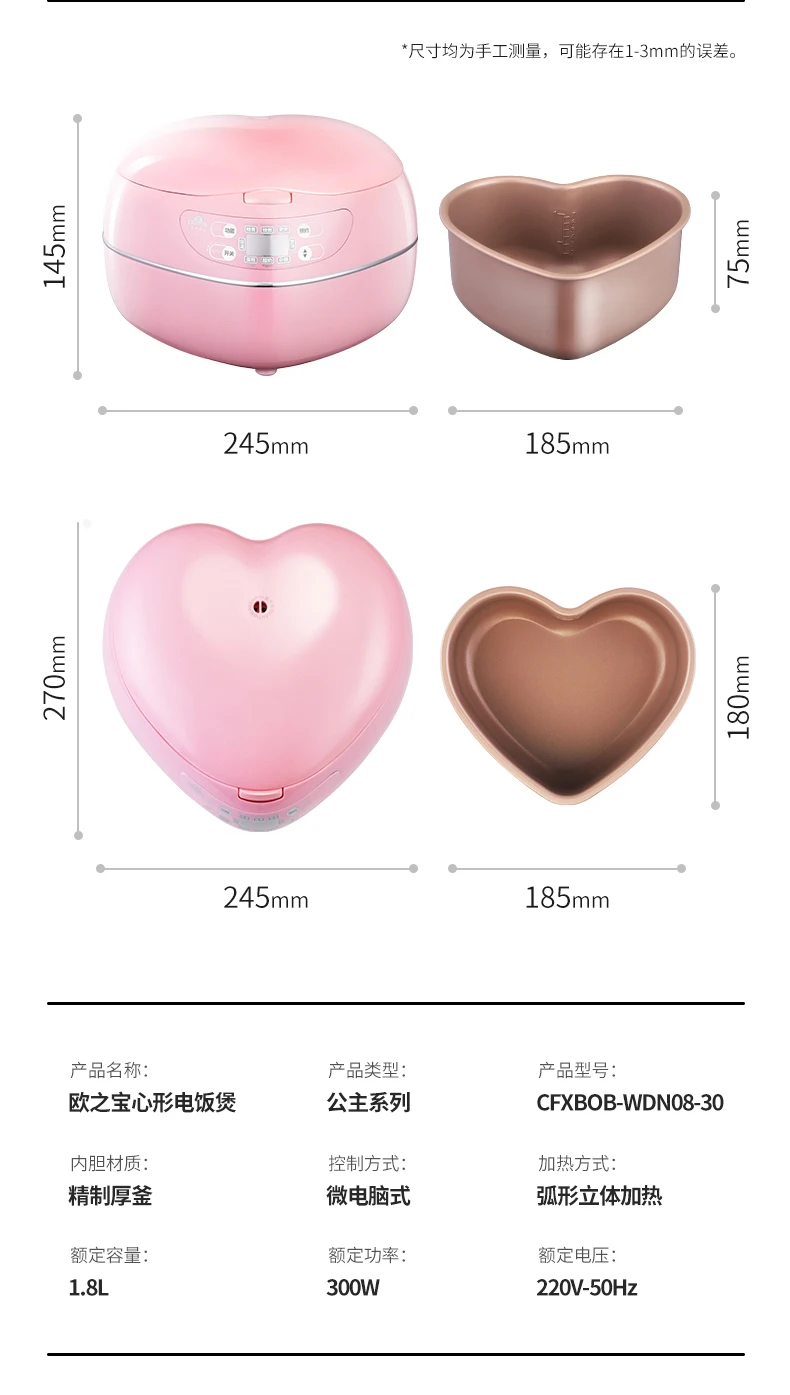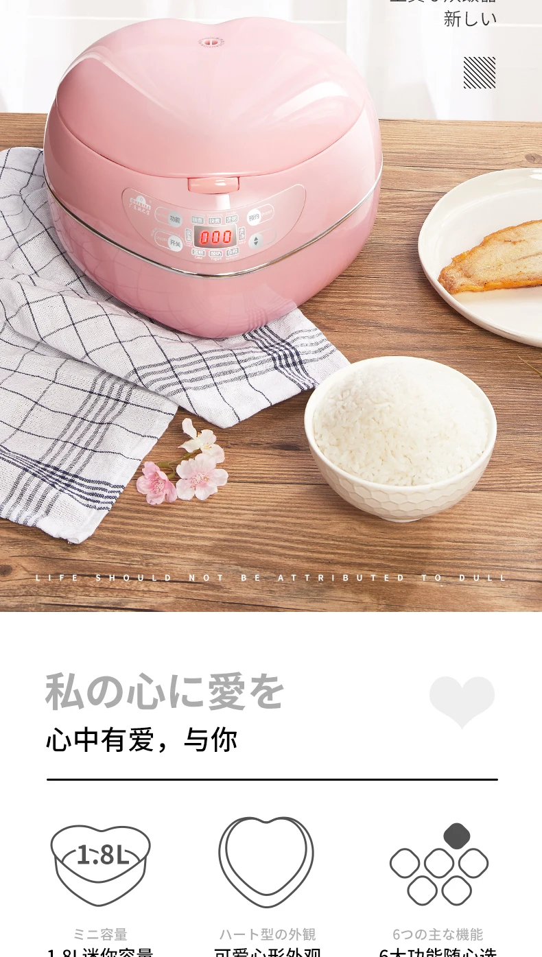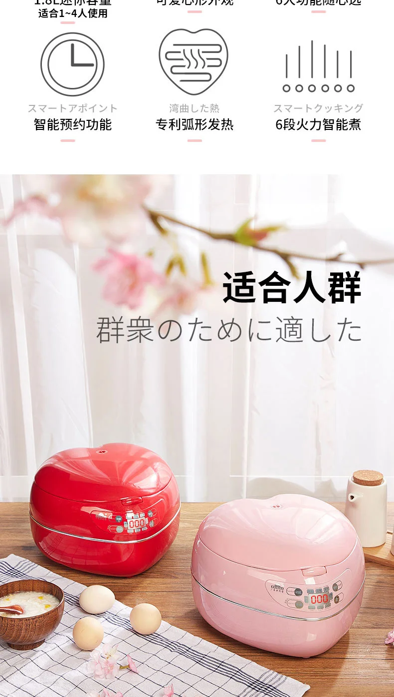 Heart-shaped intelligent multi-function mini electric rice cooker rice cooker home 2-3 people220V300W50HZ1.8L CFXBOB-WDN08-30