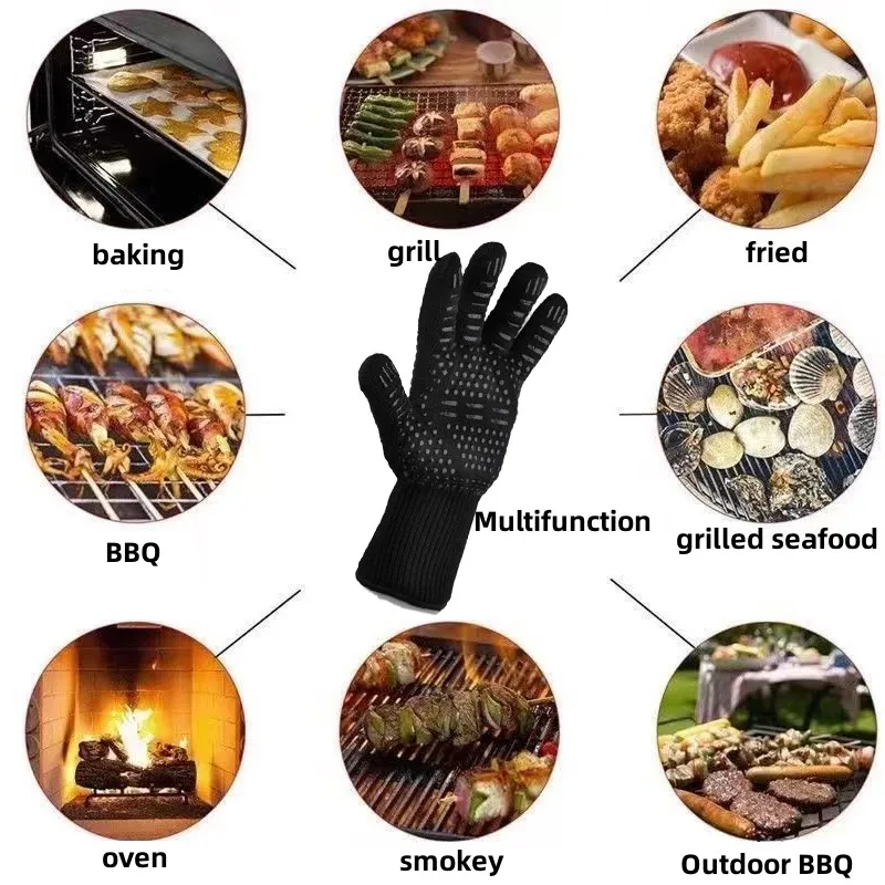 Heat Resistant BBQ Gloves 800 Degrees Non-Slip Silicone Insulation Microwave Gloves For Kitchen, Grill, Camping, and Cookware