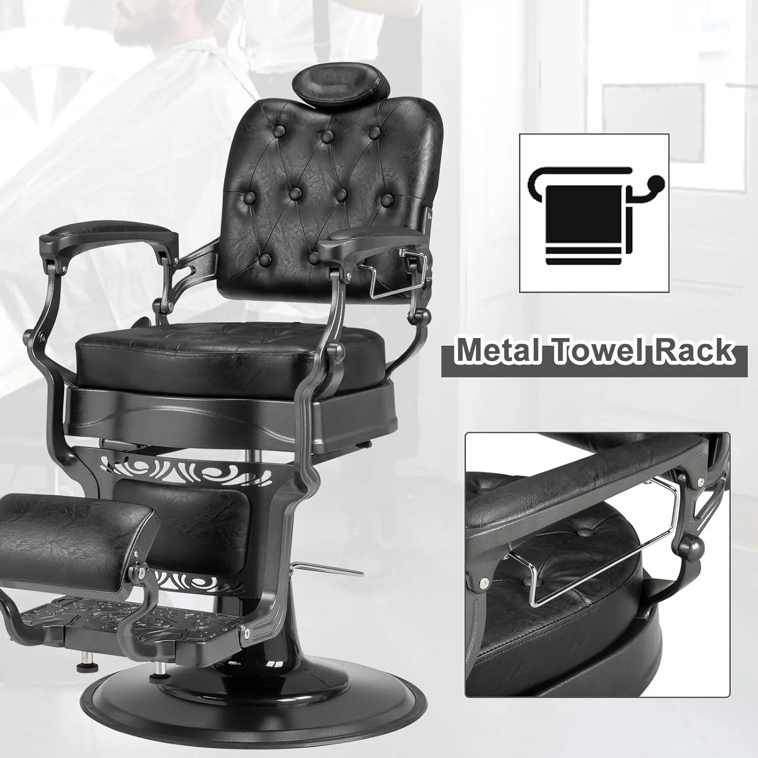 【Wide Applicable】The black barber chair is suitable for most occasions, barber shop, beauty salon, tattoo parlor, etc. Classic shape and sophisticated design, suitable for most women and men.