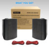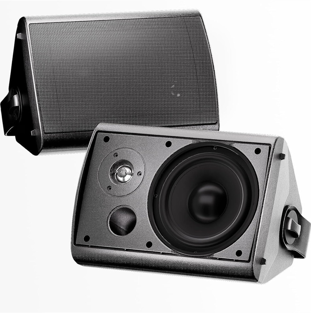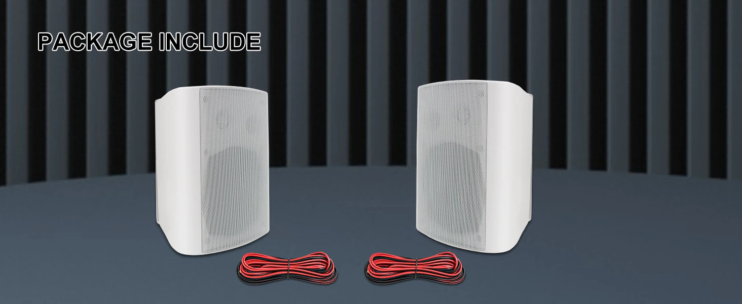 ALL WEATHER OUTDOOR SPEAKER: With a rating of IP66, the Wall Mount outdoor/indoor Speakers are water and dust resistant, specially designed to withstand most environments. Hang your speakers outside without fear of damage. Adjustable/locking swivel mounting brackets allow for optimal sound dispersion.Simply Mount the swiveling U-bracket. Adjust angle and fasten the speakers with a click