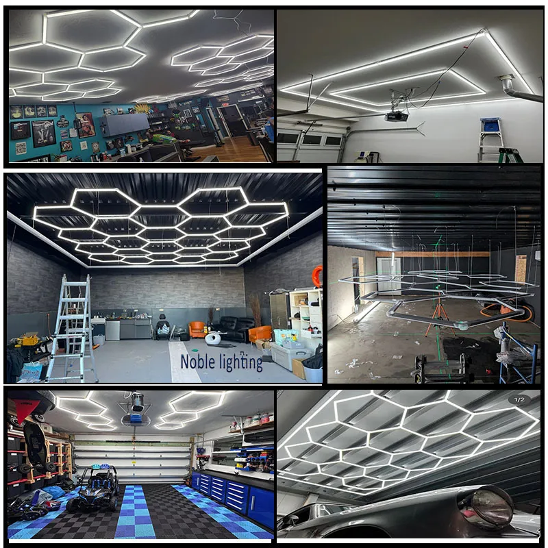 Garage Light Hexagon Lights lamp 110V-240V Led Tube Honeycomb Ceiling Lighting For Auto Car Body Repair Led Workshop With Border