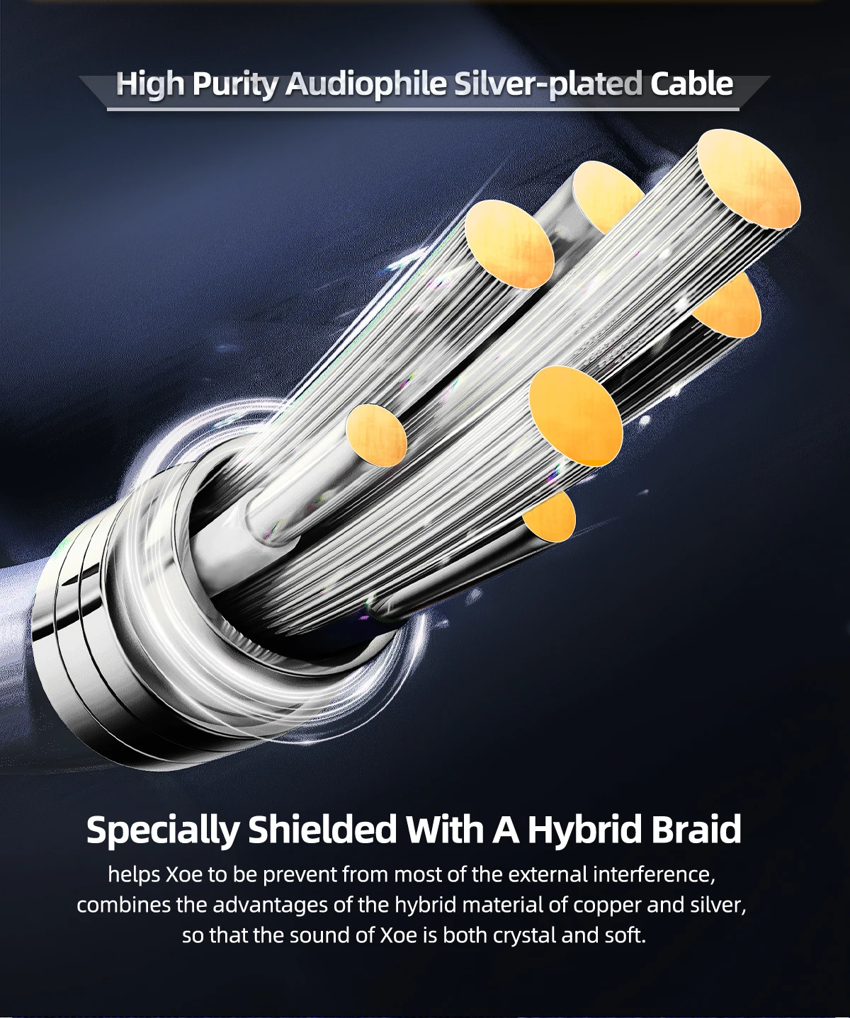 High purity audiophile silver-plated cable: The audiophile silver-plated OFC music cable is specially shielded with a hybrid braid, which not only effectively helps HIBYDIGITAL Xoe to be prevent from most of the external interference, but also combines the advantages of the hybrid material of copper and silver, so that the sound of Xoe is both crystal and soft.
