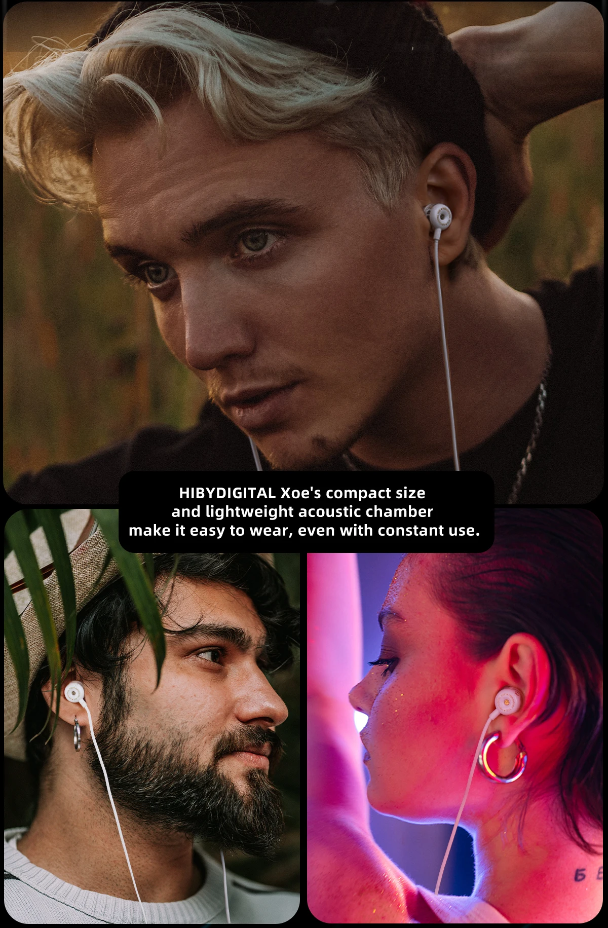 Lightweight and easy-to-wear design – With its easy-to-wear design and optimized tube angle, the HIBYDIGITAL Xoe can be worn easily by most users. The HIBYDIGITAL Xoe’s compact size and lightweight acoustic chamber make it easy to wear, even with constant use.