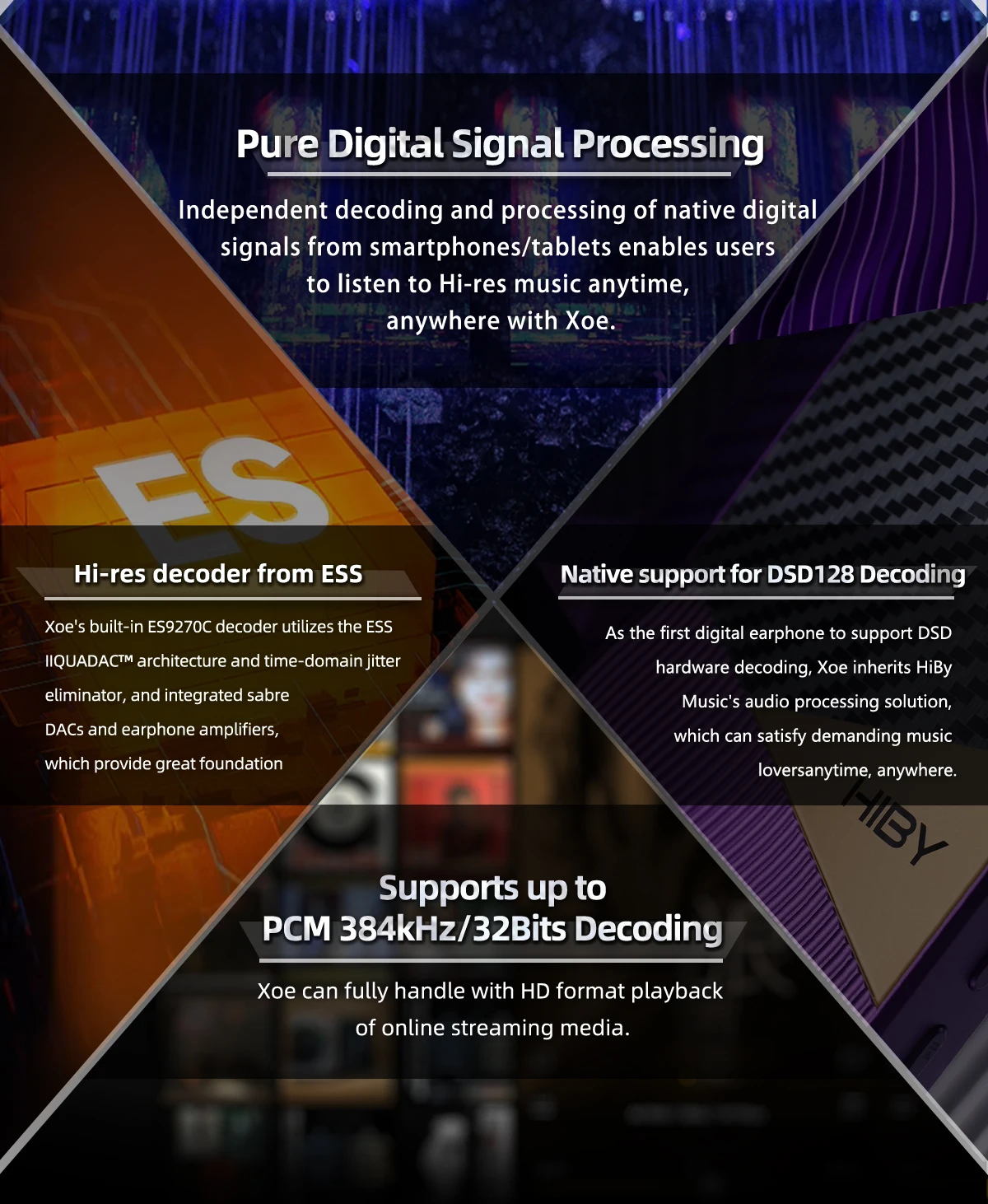 Pure Digital Signal Processing: Independent decoding and processing of native digital signals from smartphones/tablets enables users to listen to ultra-clear, high-resolution music anytime, anywhere with the HIBYDIGITAL Xoe.
