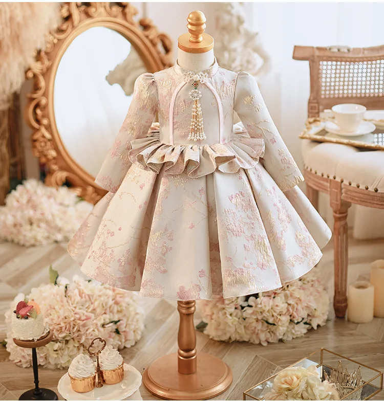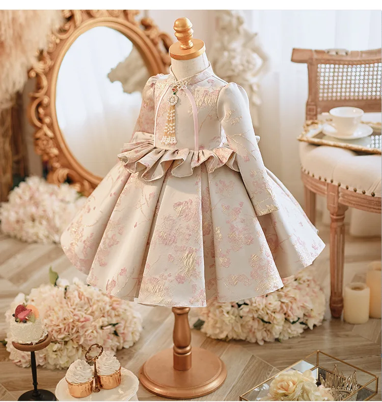 High-End Children’s Cheongsam Little Dress Princess Dress Flower Girl Baby Girl One Year Old Clothes Birthday Pettiskirt