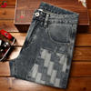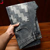 High-end trendy jeans men’s Korean-style slim fit skinny pants casual all-match stretch contrast color fashion trousers
