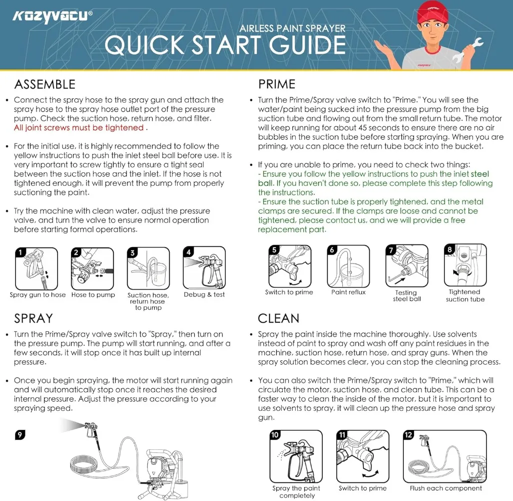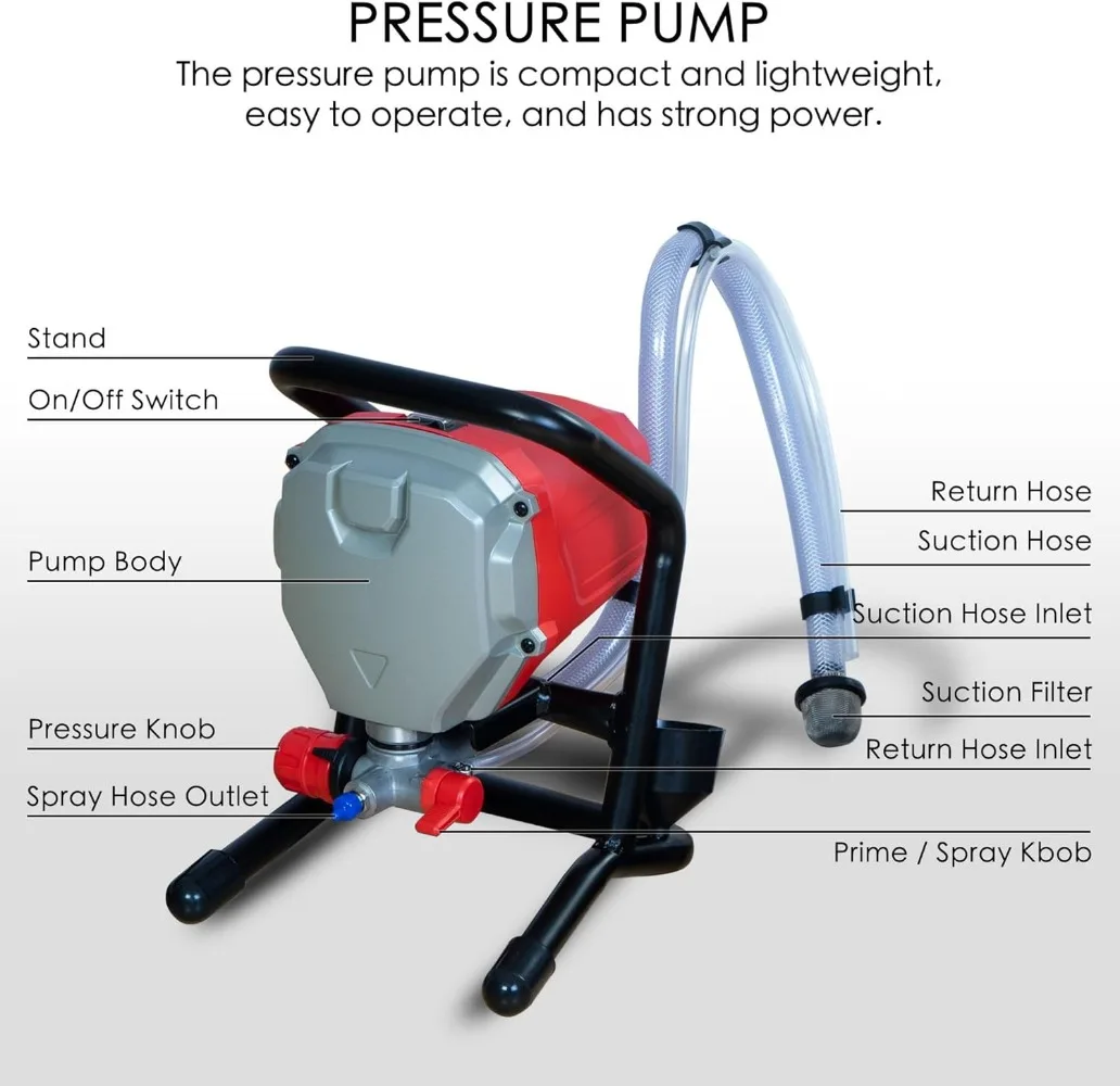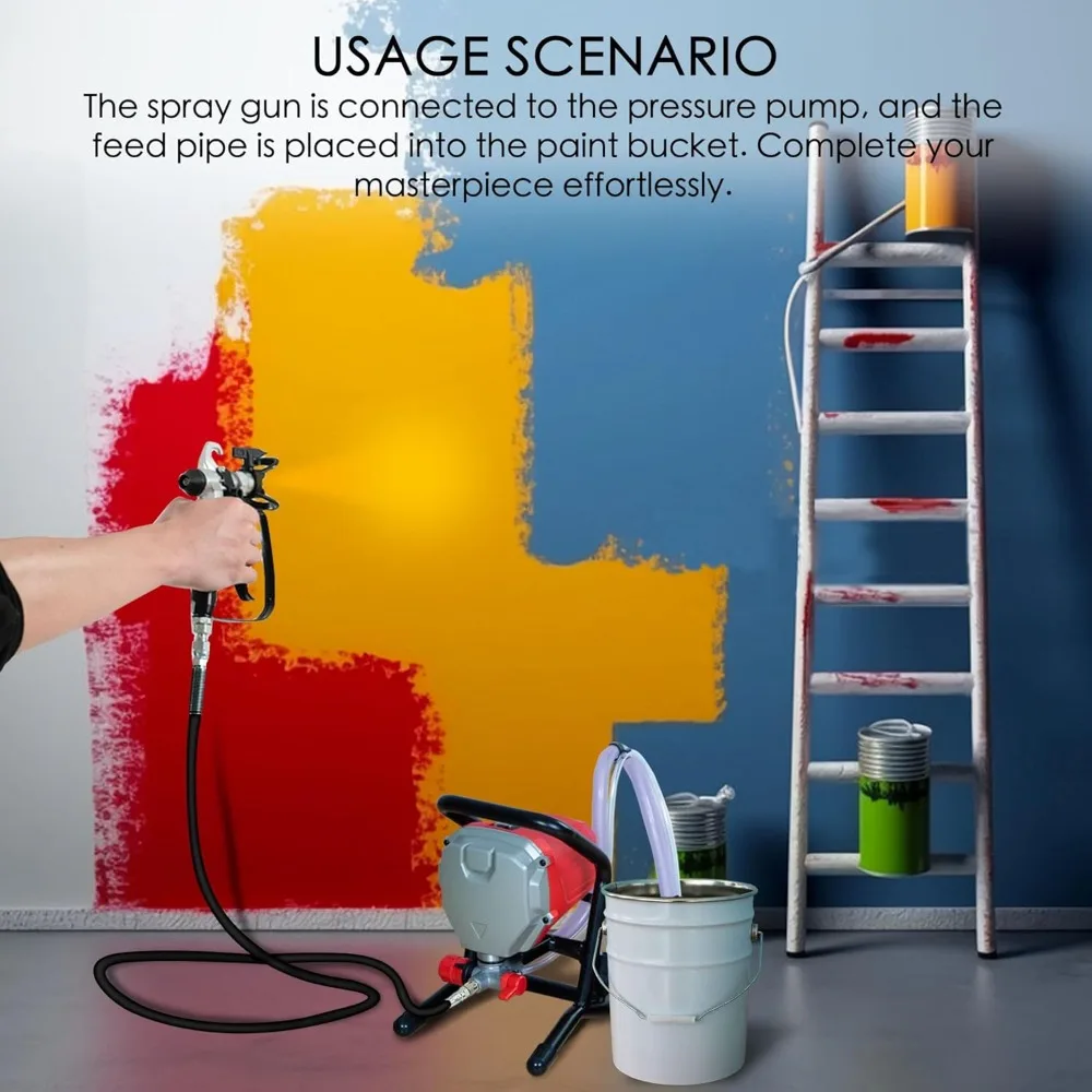 - ✅Package includes a 1-year warranty, the Airless Paint Sprayer, Spray Gun, 25 Feet High Pressure Hose, Plastic Cup, Brush, 1 standard