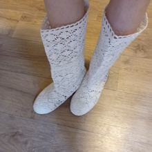 Very cool boots! Lightweight and comfortable. Size ordered according to the table. On my 37 (23.5) took 37. The leg is narrow, so we sat down normally, but I would like a little loose. I suggest you take one size bigger!!!
