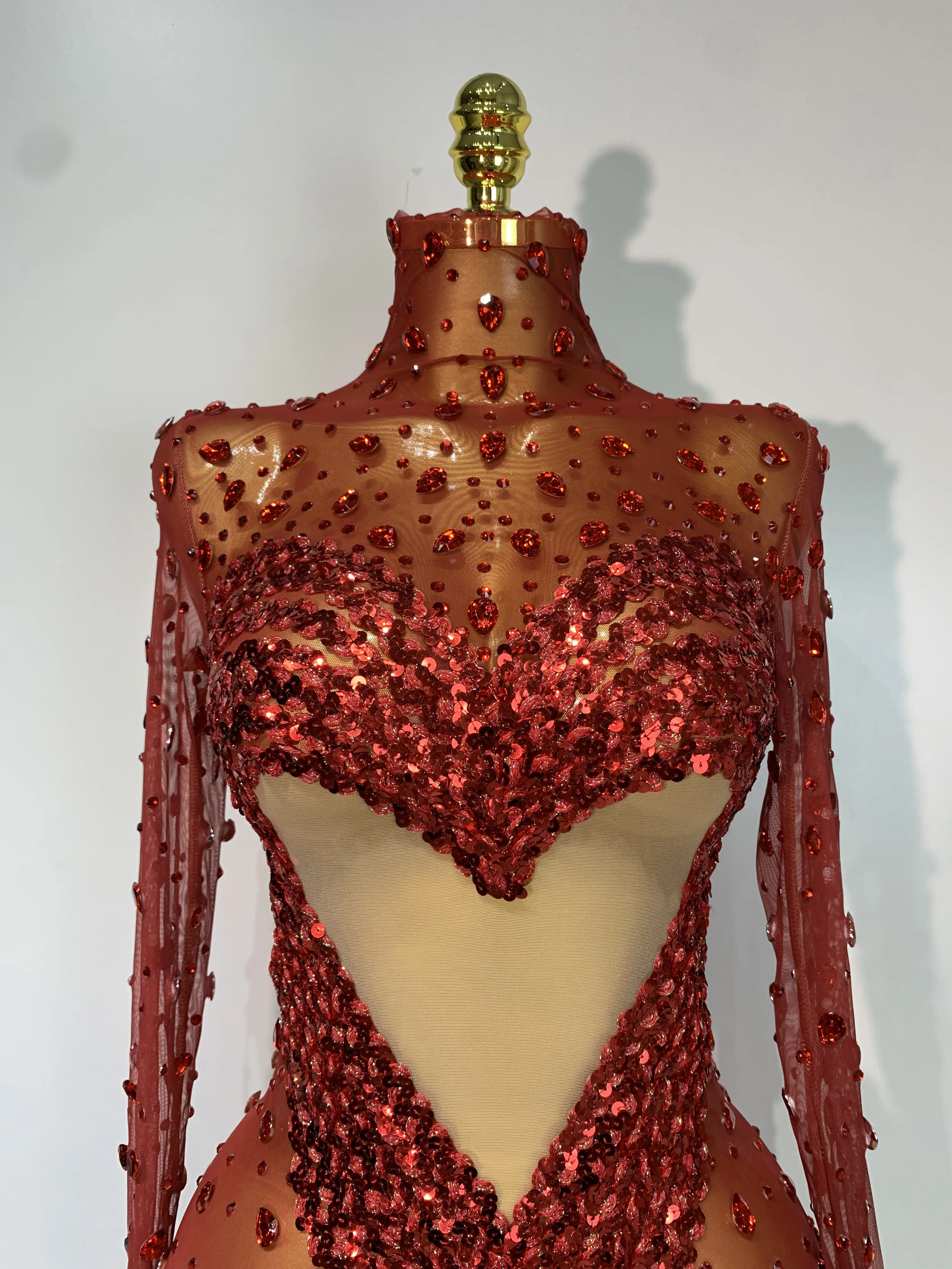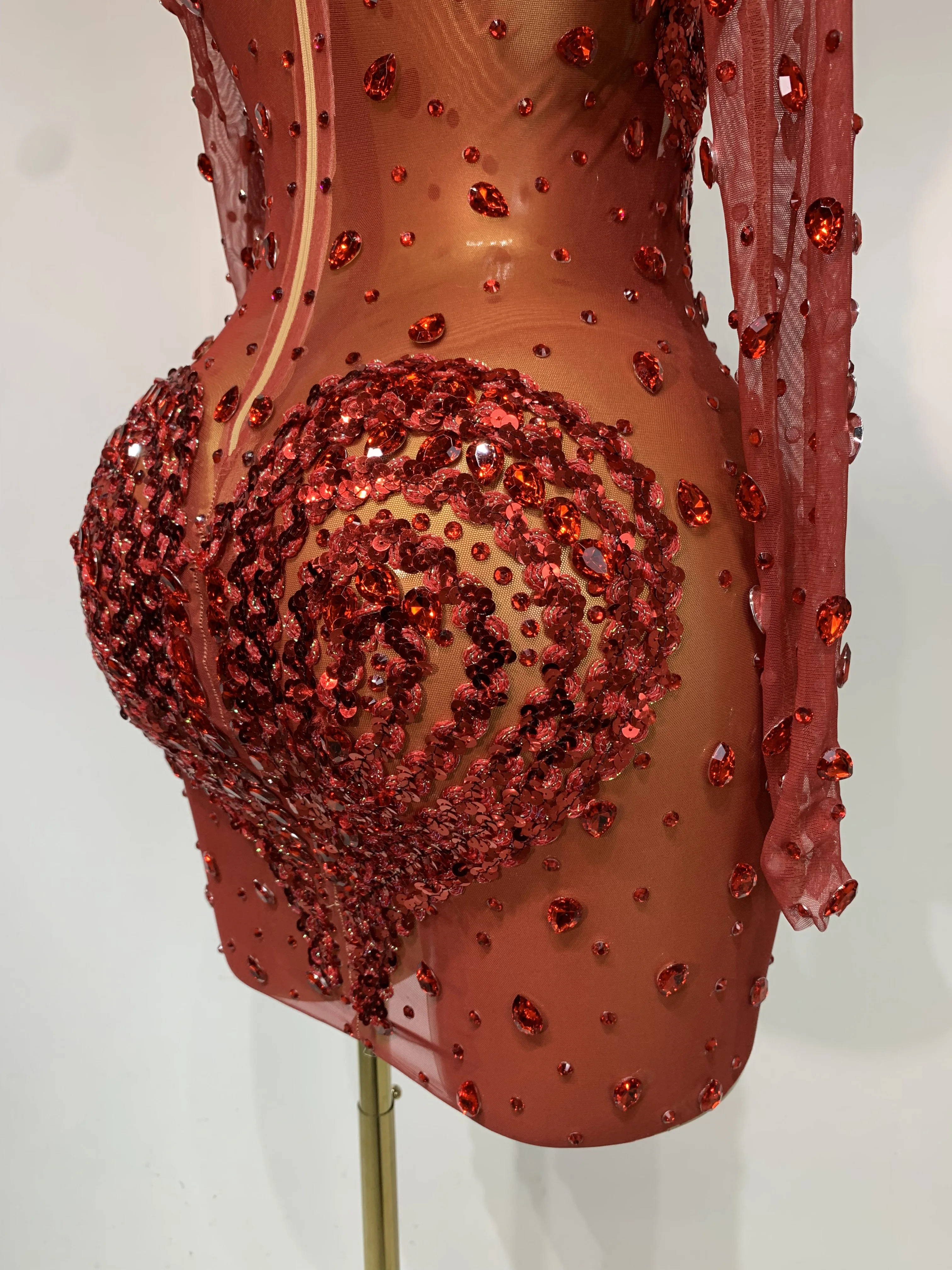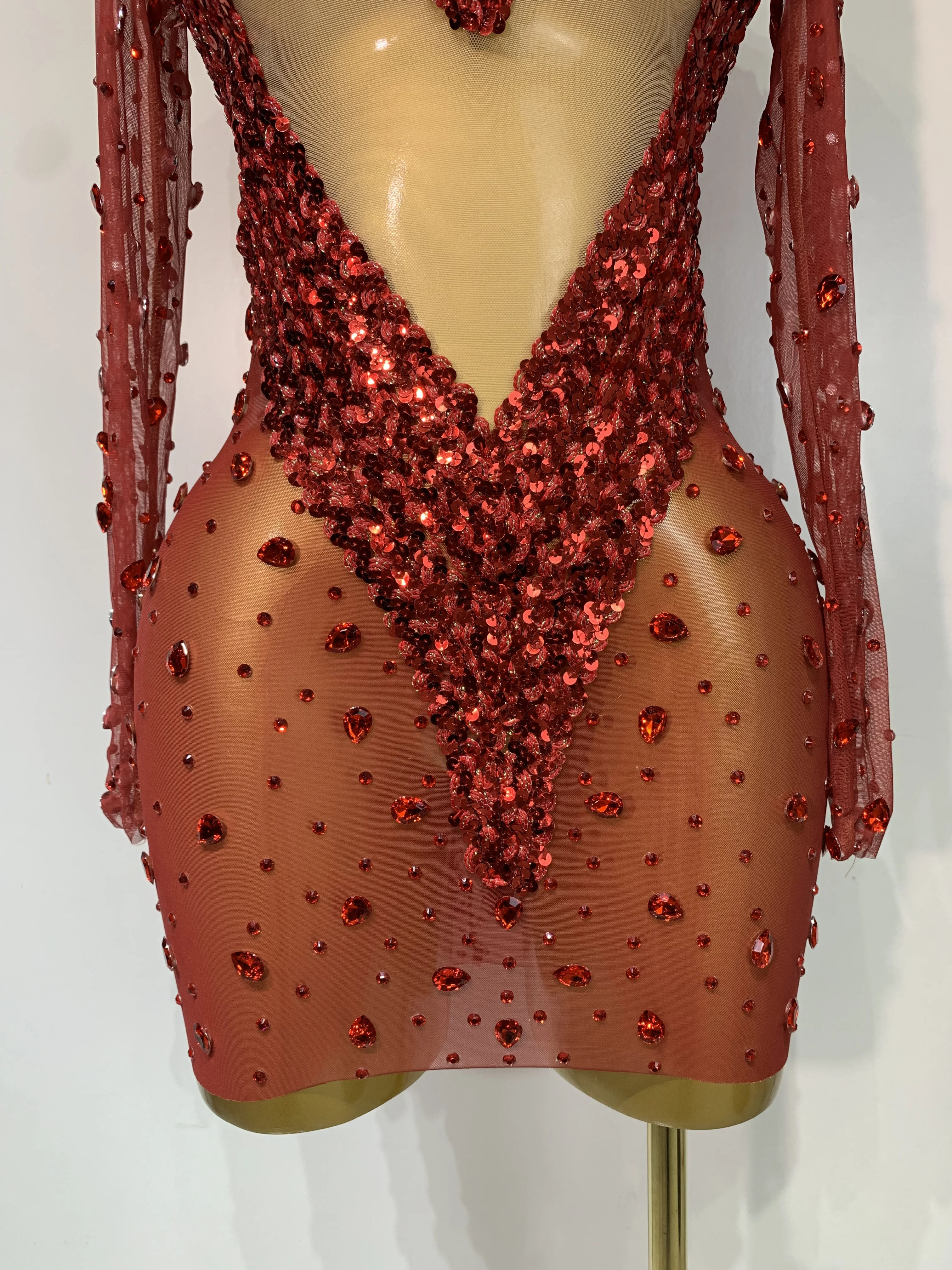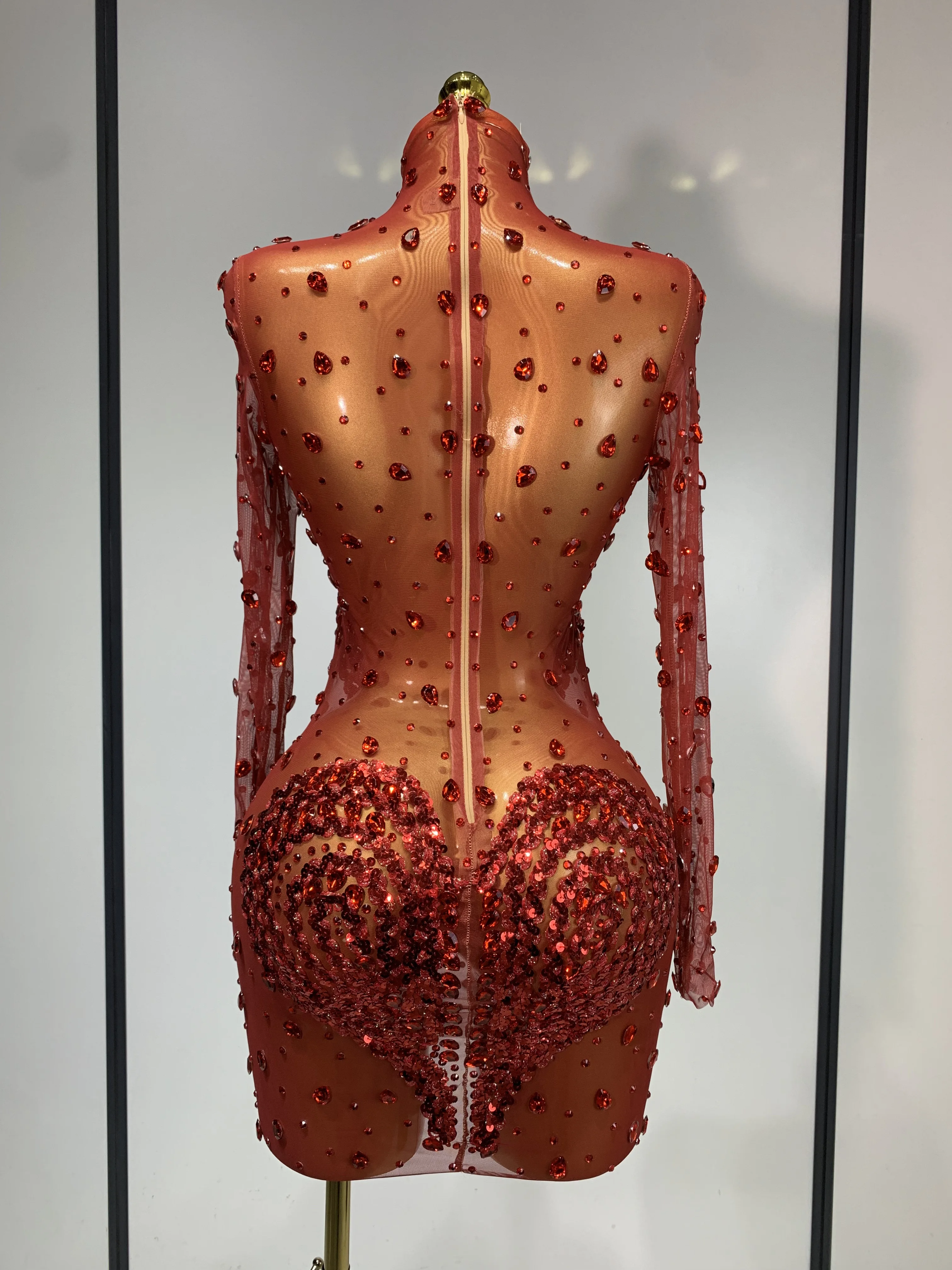 High Quality Rhinestone Sequin Sexy See Through Mesh Mini Dress Women Evening Party Nightclub Singer Stage PerformanceCostume