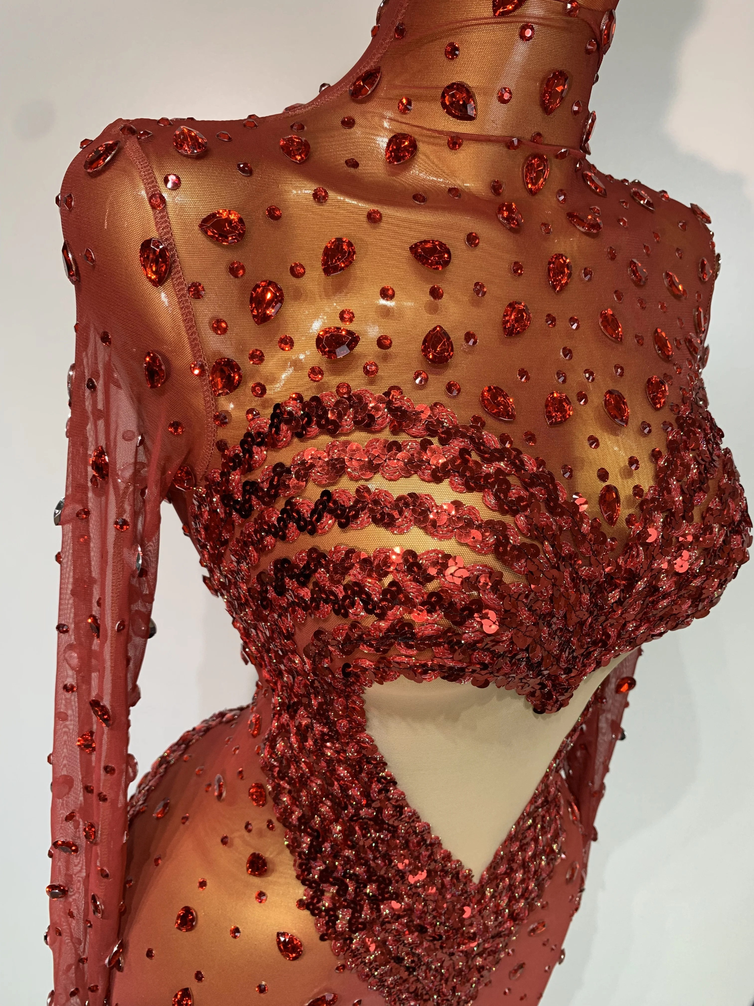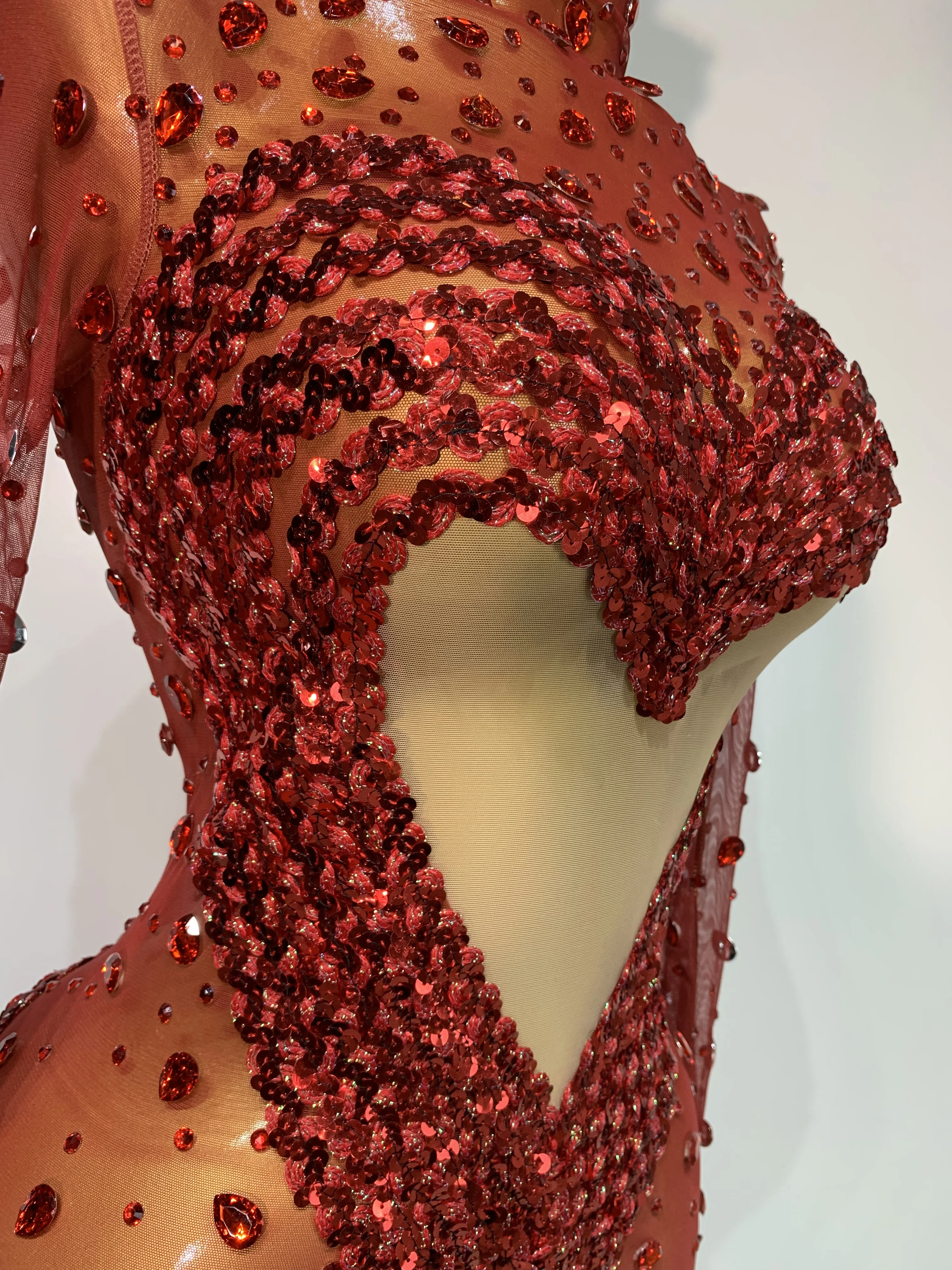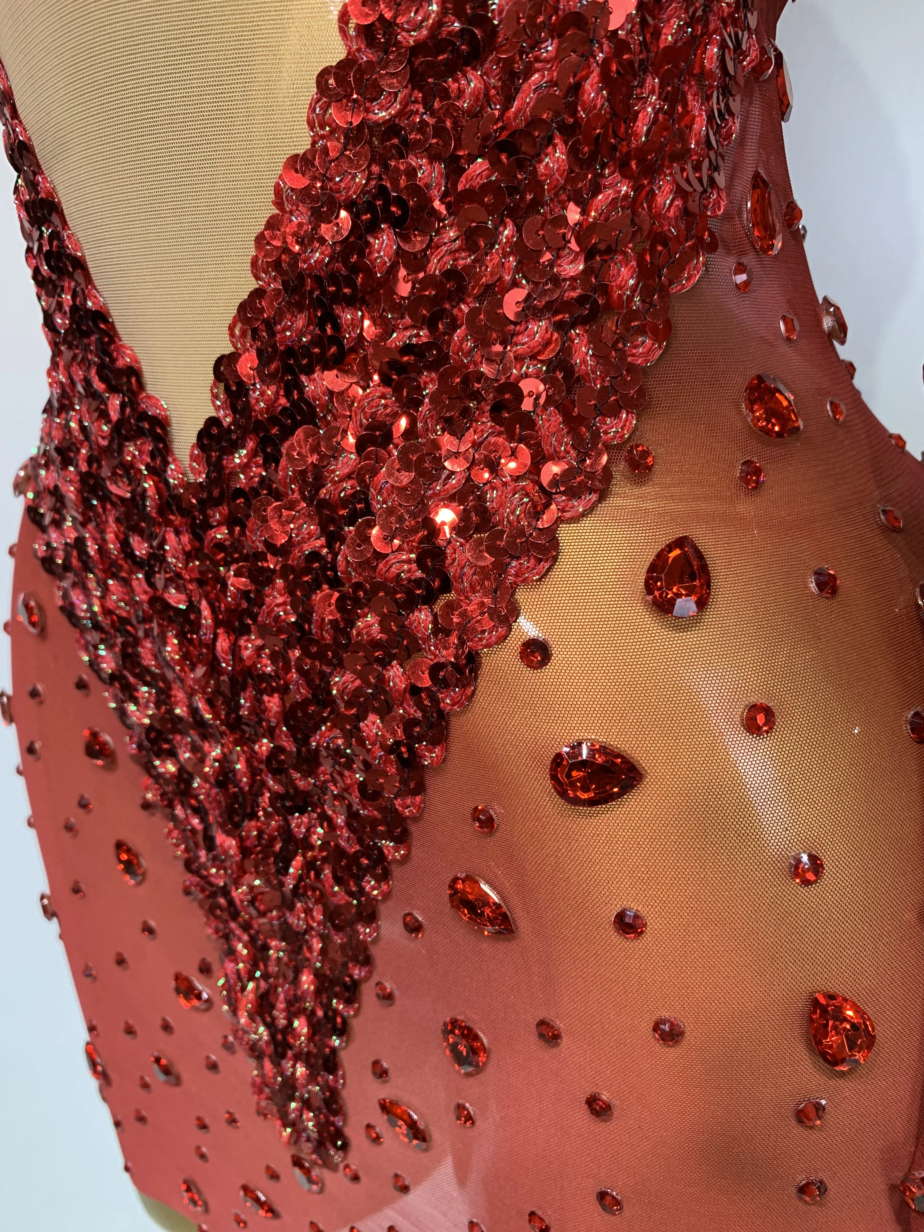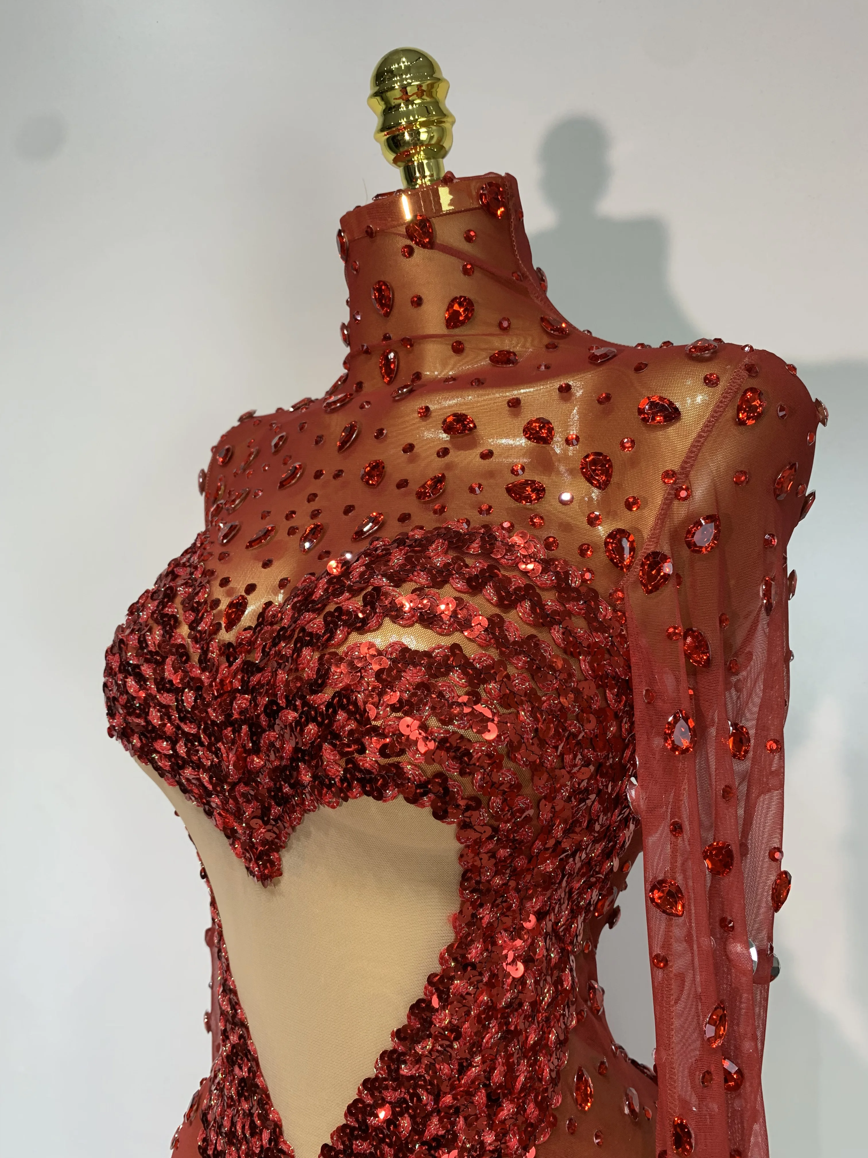 High Quality Rhinestone Sequin Sexy See Through Mesh Mini Dress Women Evening Party Nightclub Singer Stage PerformanceCostume