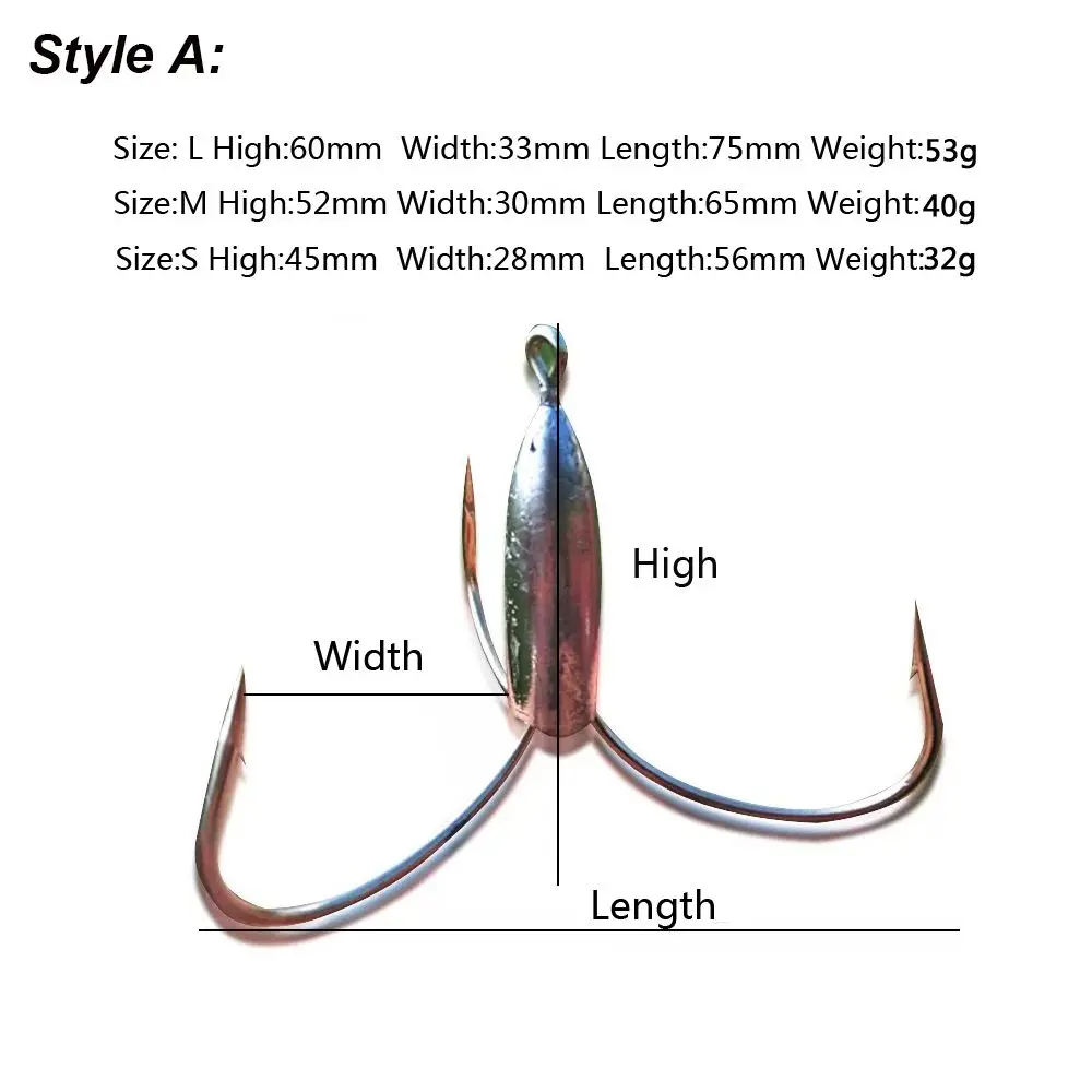 High Quality Sharp Barb Carbon Steel Lead Sinker Weight Fishhook Sharpened Fishing Treble Hooks Durable Head