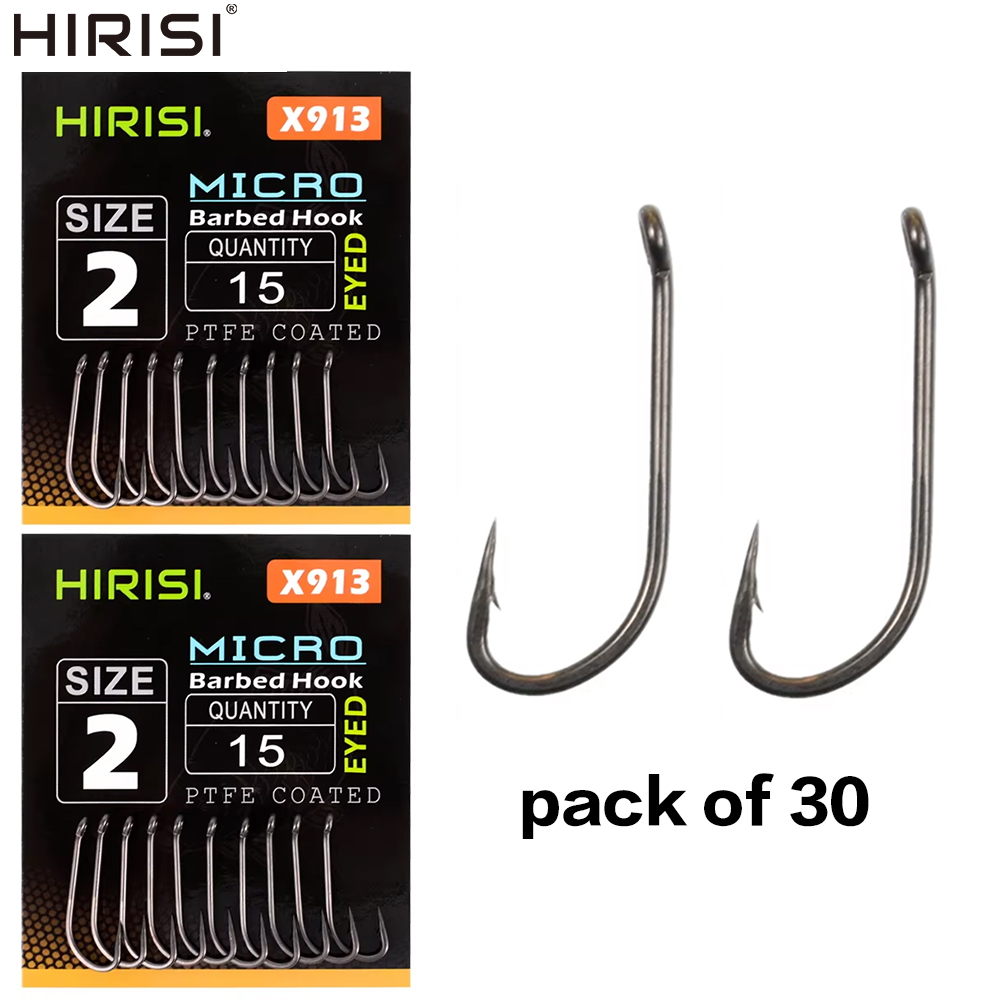 Hirisi 30pcs PTFE Coated High Carbon Steel Fish Hook Micro Barbed With Eye Long Shank X913 Carp Fishing Accessories