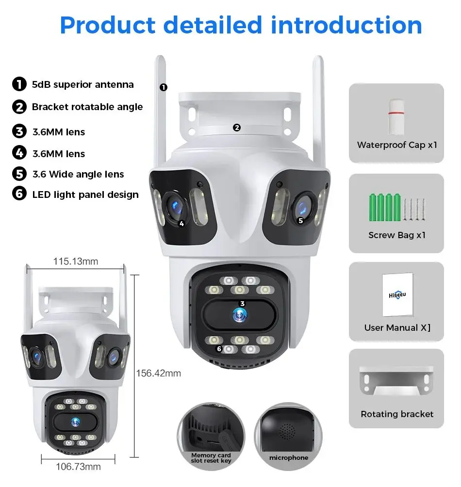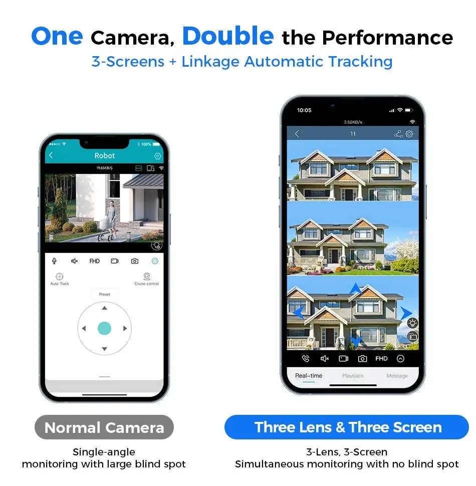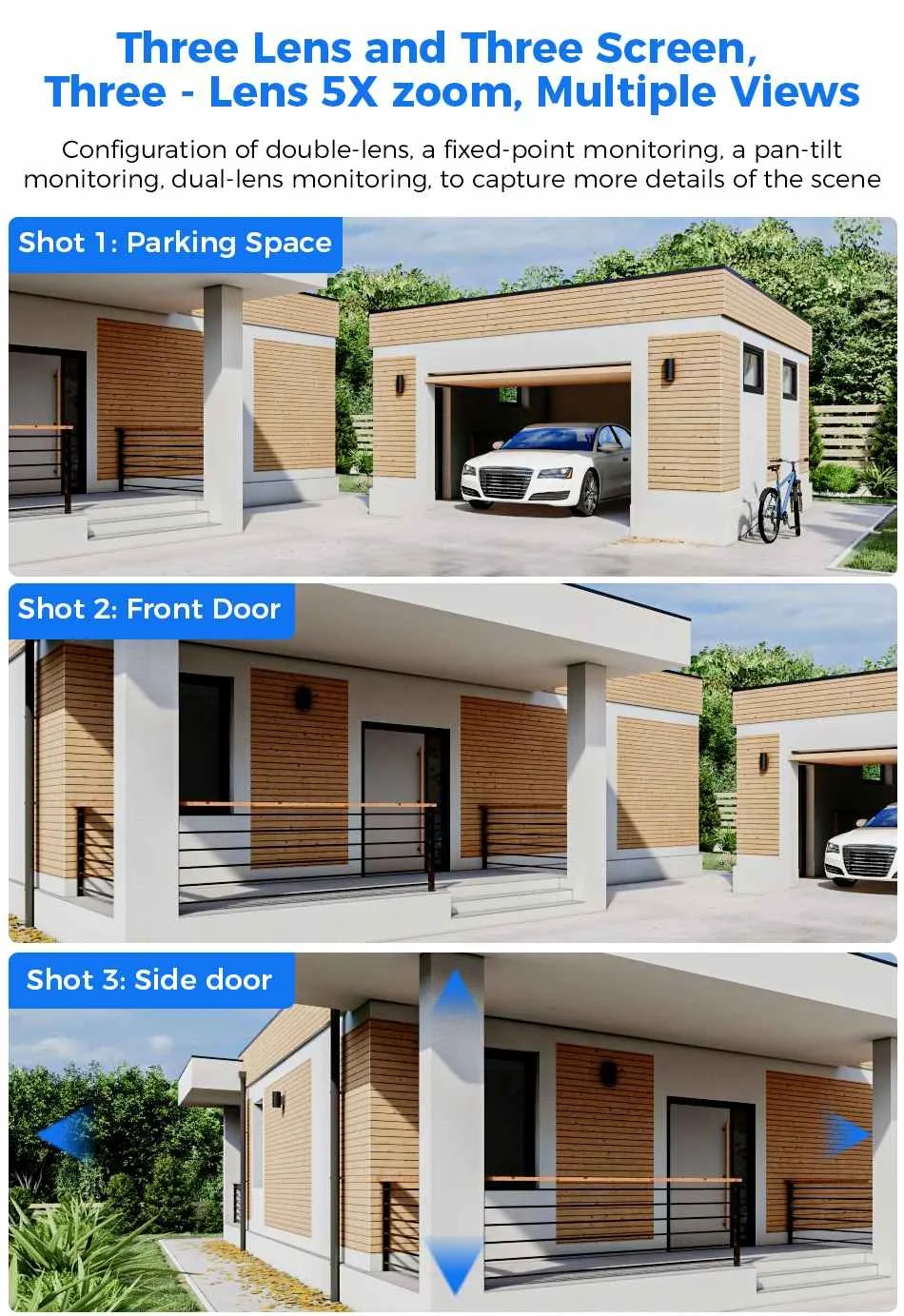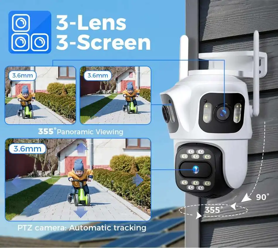 3. Triple lens configuration: The three-lens system provides wider coverage, reducing blind spots and improving overall surveillance efficiency.