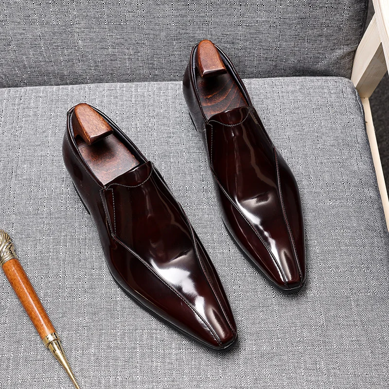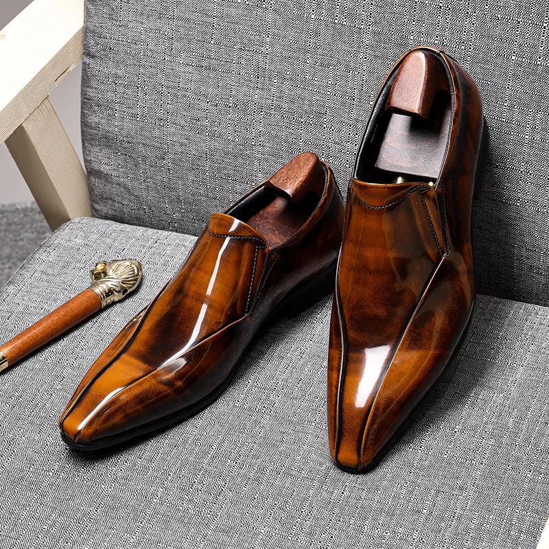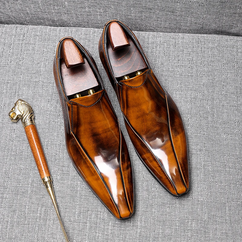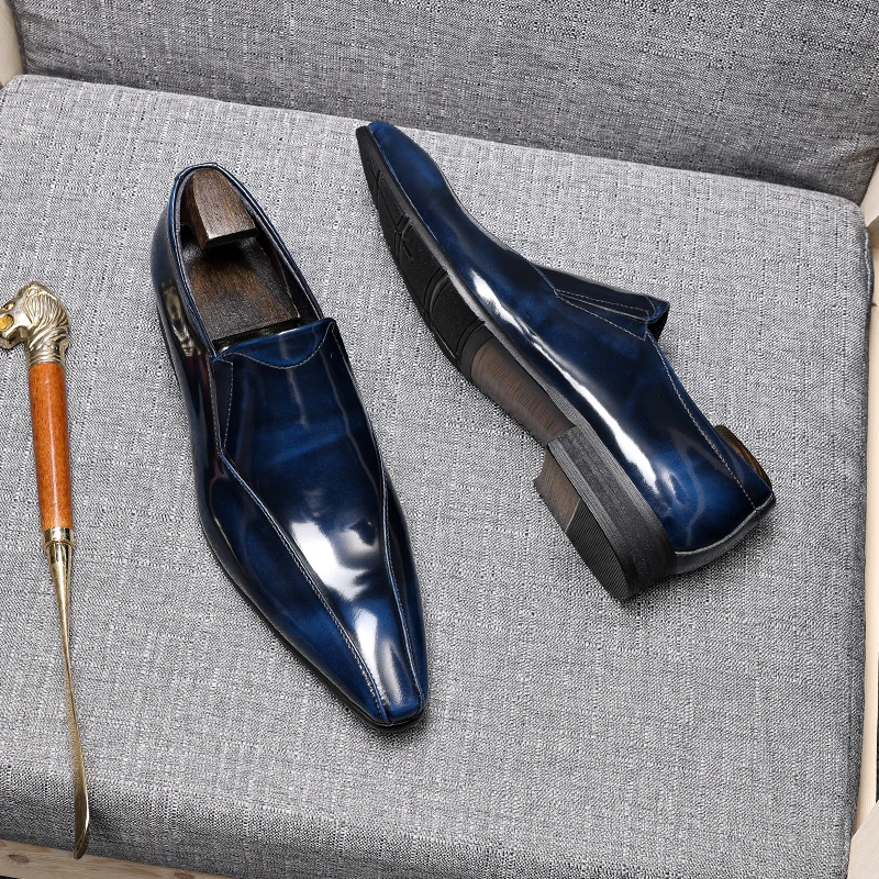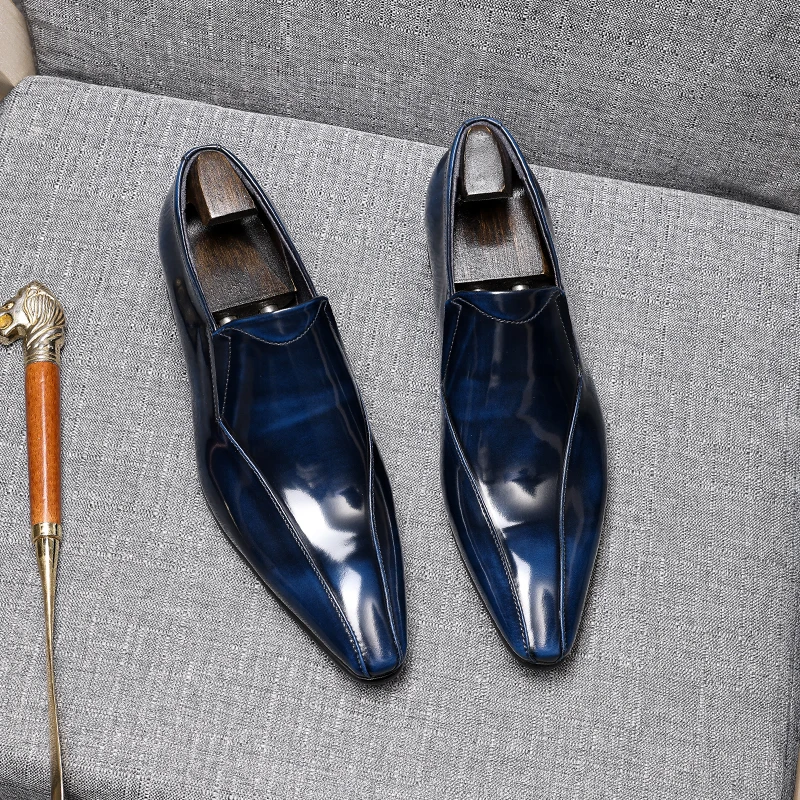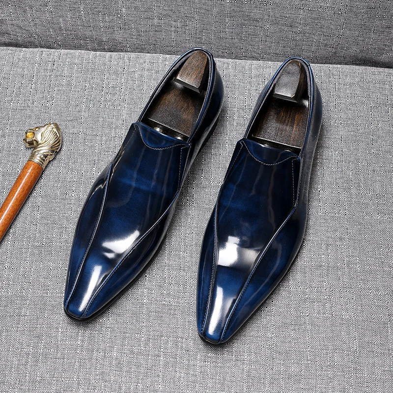 HNXC Handmade Mens Wedding Oxford Shoes Black Blue Genuine Leather Luxury Designer Dress Shoe Men Slip On Formal Loafers Shoes