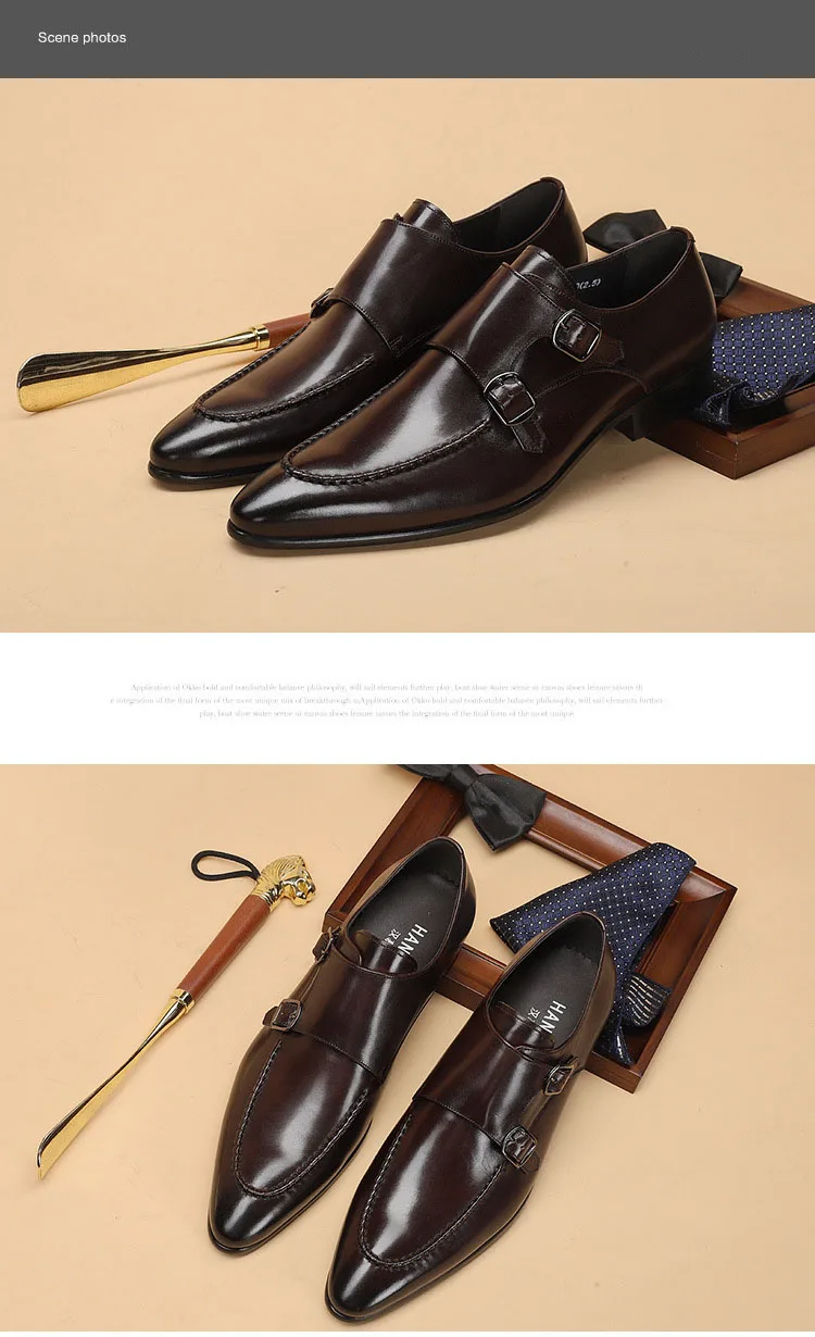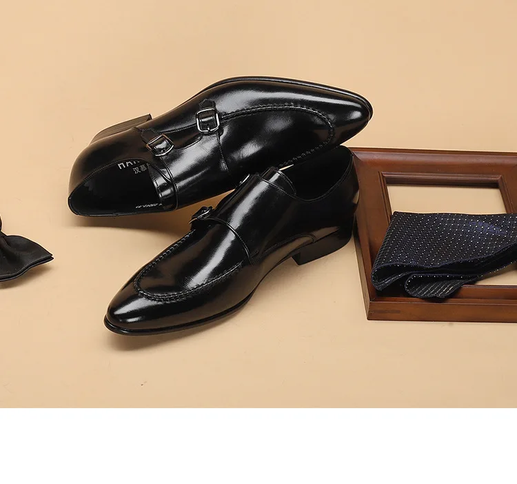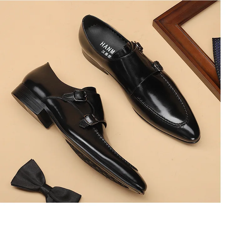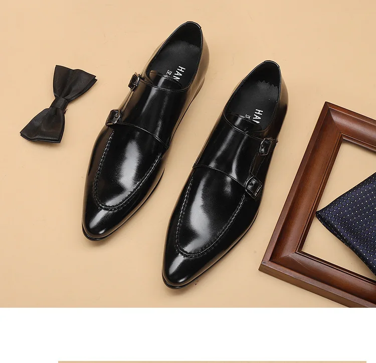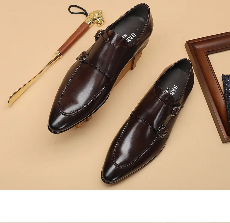 HNXC Handmade Pointed Toe Men Oxfords Double Buckles Monk Strap Formal Shoes Genuine Leather Classic Dress Shoes For Men