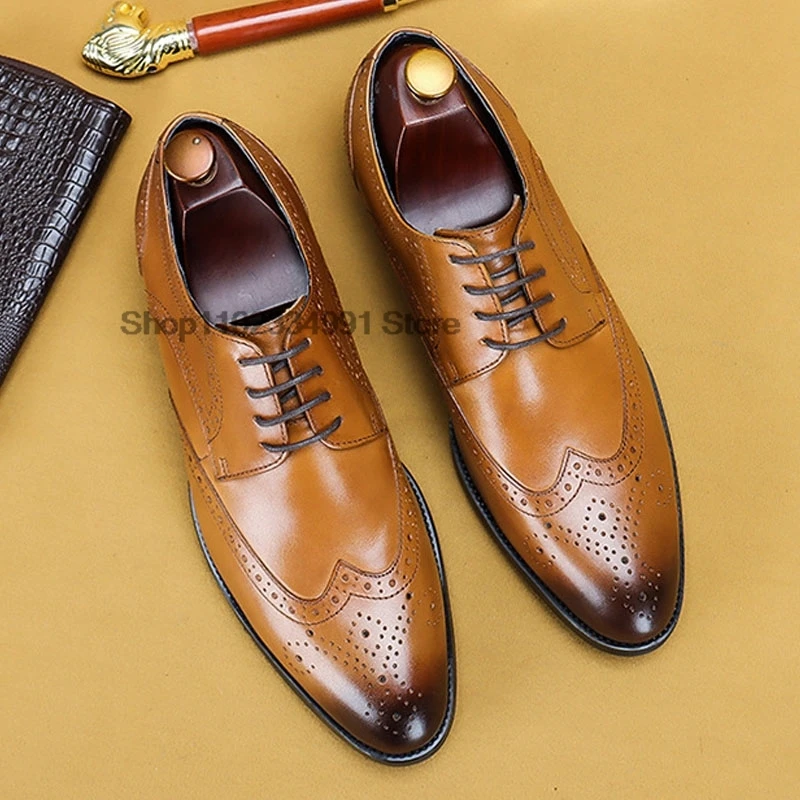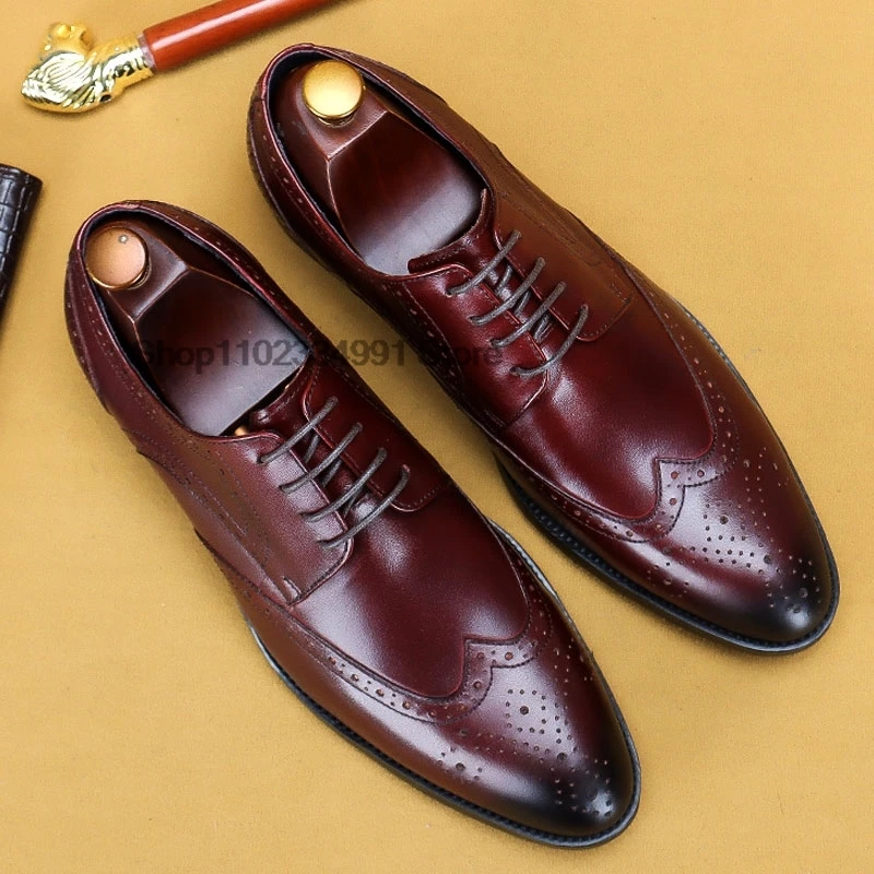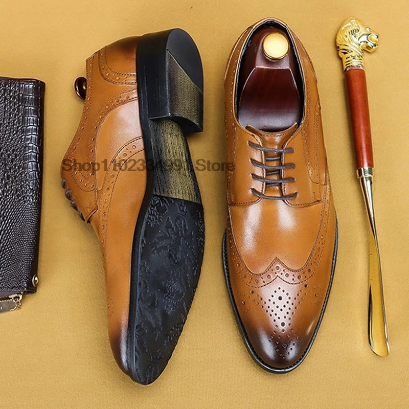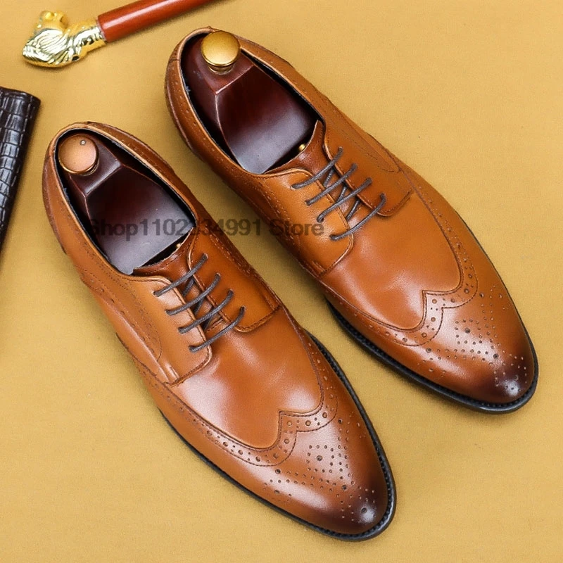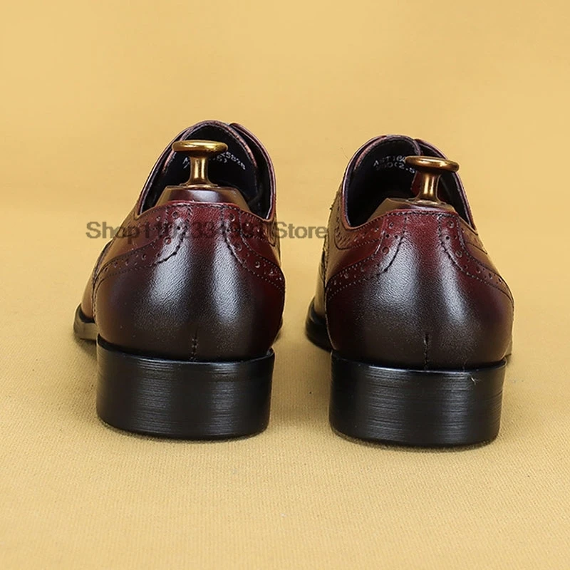 HNXC Italian Brown Black Genuine Leather Oxford Dress Shoes High Quality Lace Up Suit Shoes Footwear Wedding Formal Men‘s Shoes