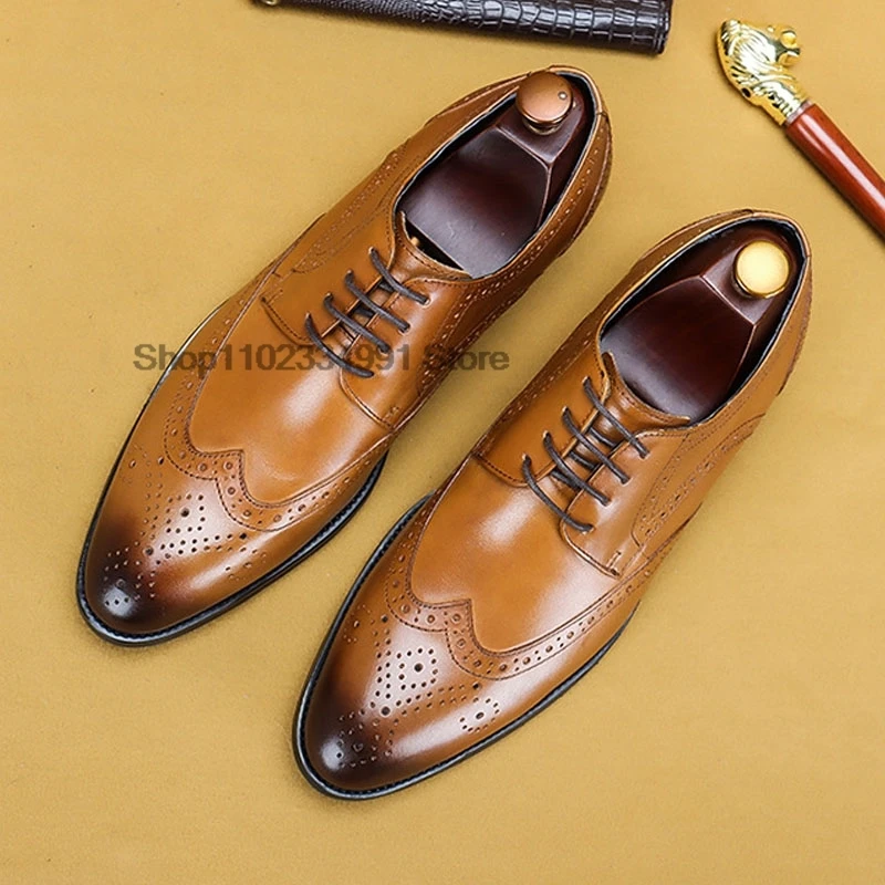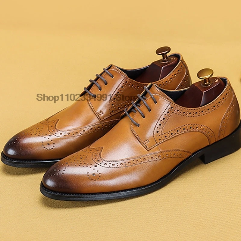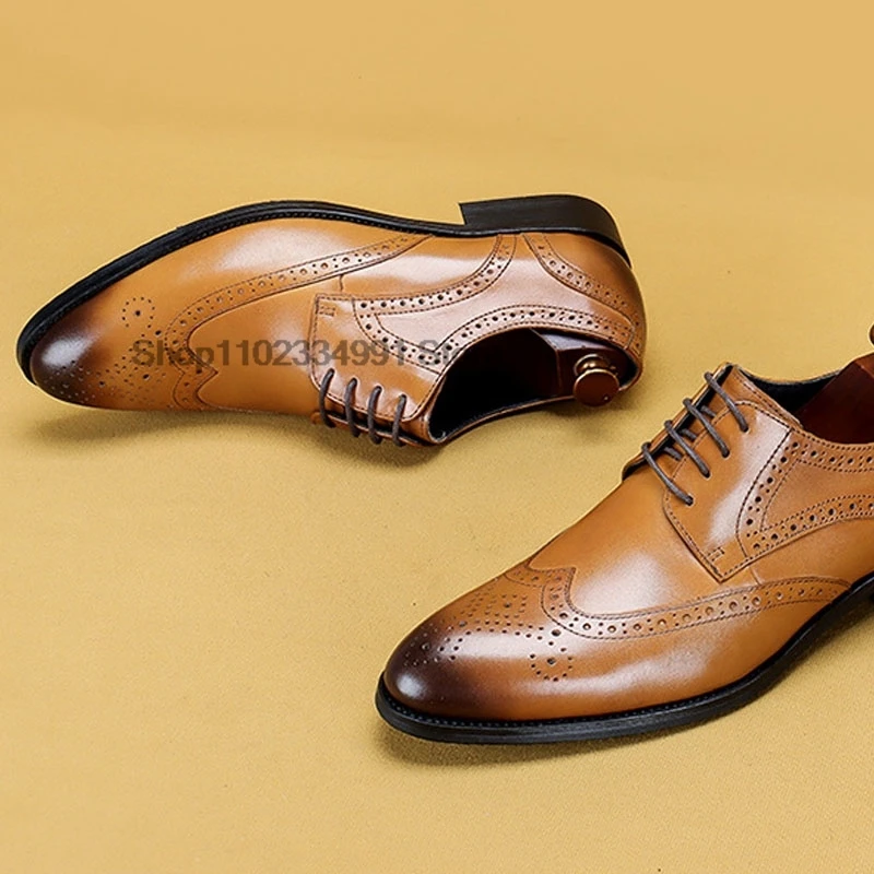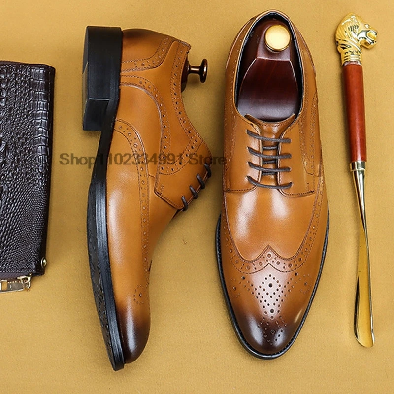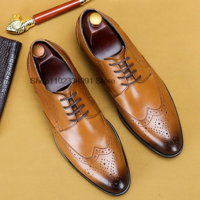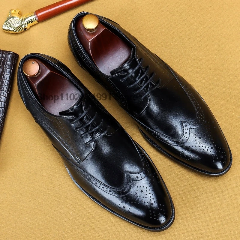 HNXC Italian Brown Black Genuine Leather Oxford Dress Shoes High Quality Lace Up Suit Shoes Footwear Wedding Formal Men‘s Shoes