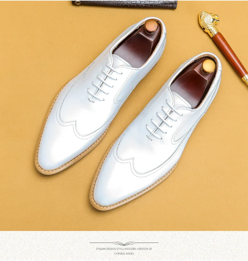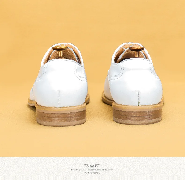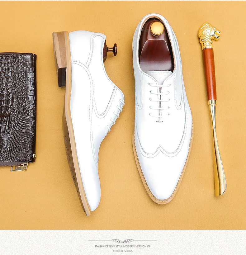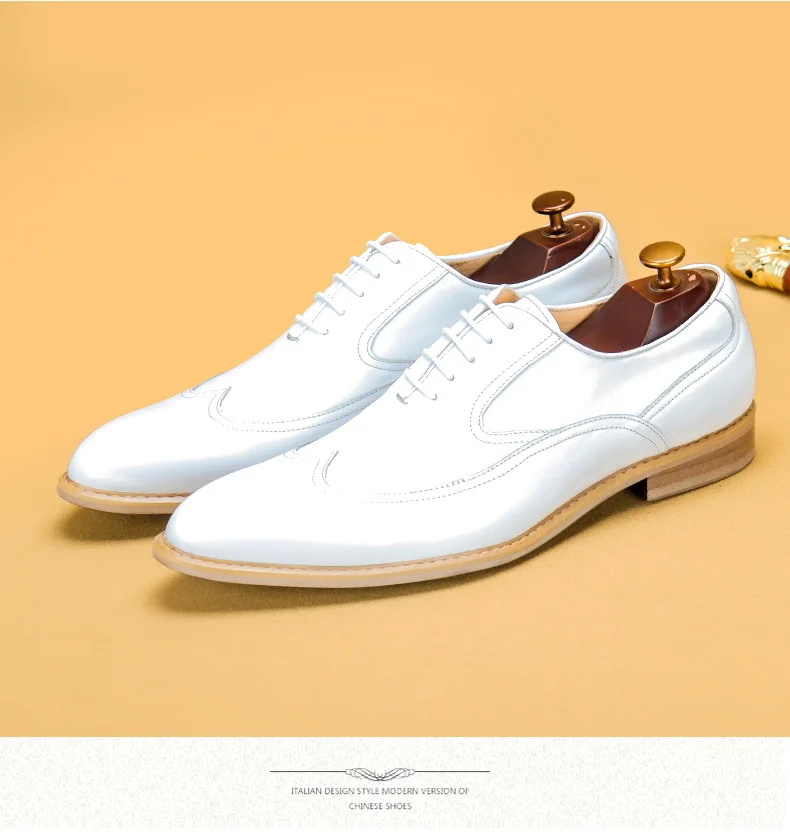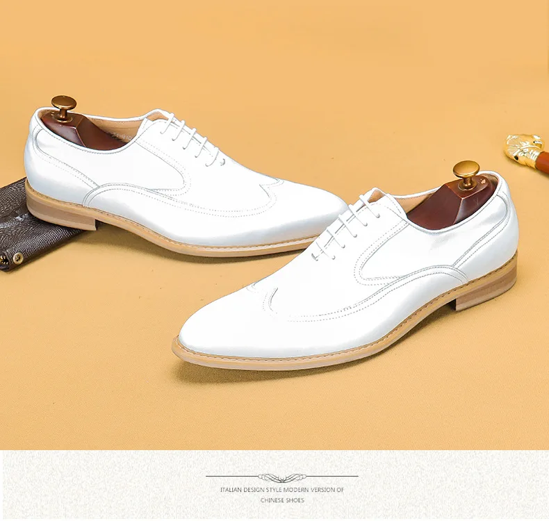 HNXC Luxury Men Oxford Shoes Lace Up Pointed Toe White Men Dress Shoes Genuine Leather Real Leather Brogue Shoes For Men