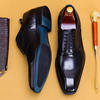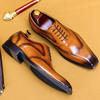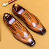 HNXC Men Wedding Dress Brogue Genuine Leather Lace-up Latest Design Fashion Color Match Handmade Leather Man Pointed Dress Shoes