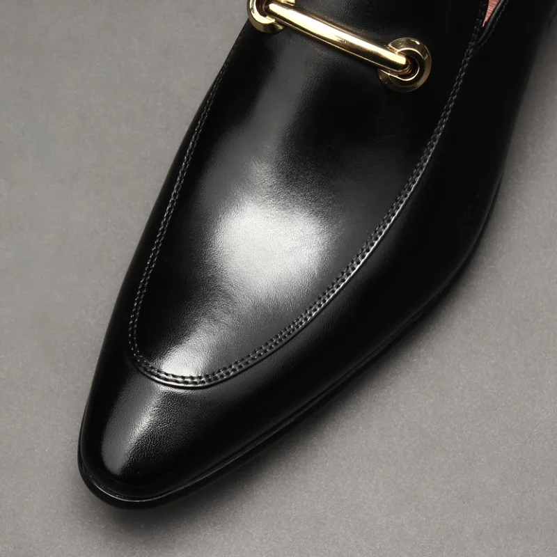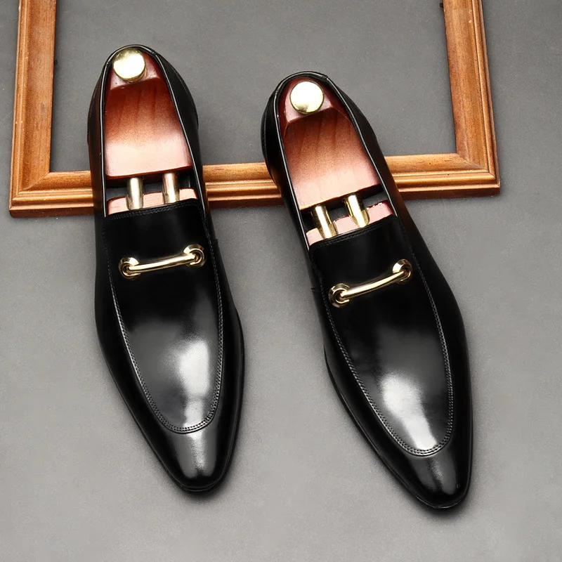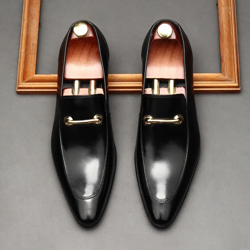 HNXC Pointed Toe Slip On Men Genuine Leather Loafer Luxury High Quality Casual Footwear For Male Black Brown Party Wedding Shoes