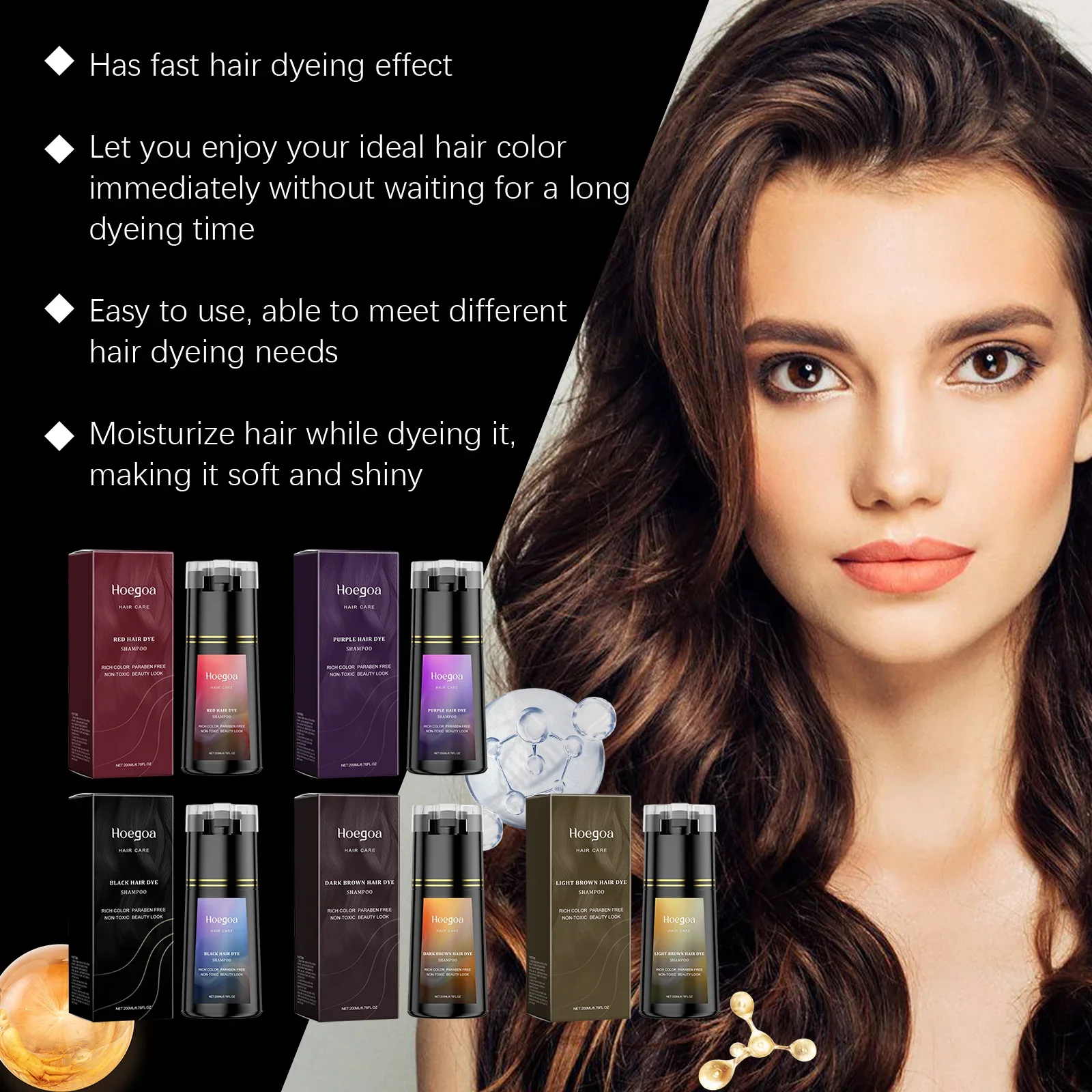 Hoegoa Hair Dye Shampoo Permanent Brown Natural Coloring Coverage Gray Hair Lasting Moisturizing Fluffy Hair Darkening Shampoo