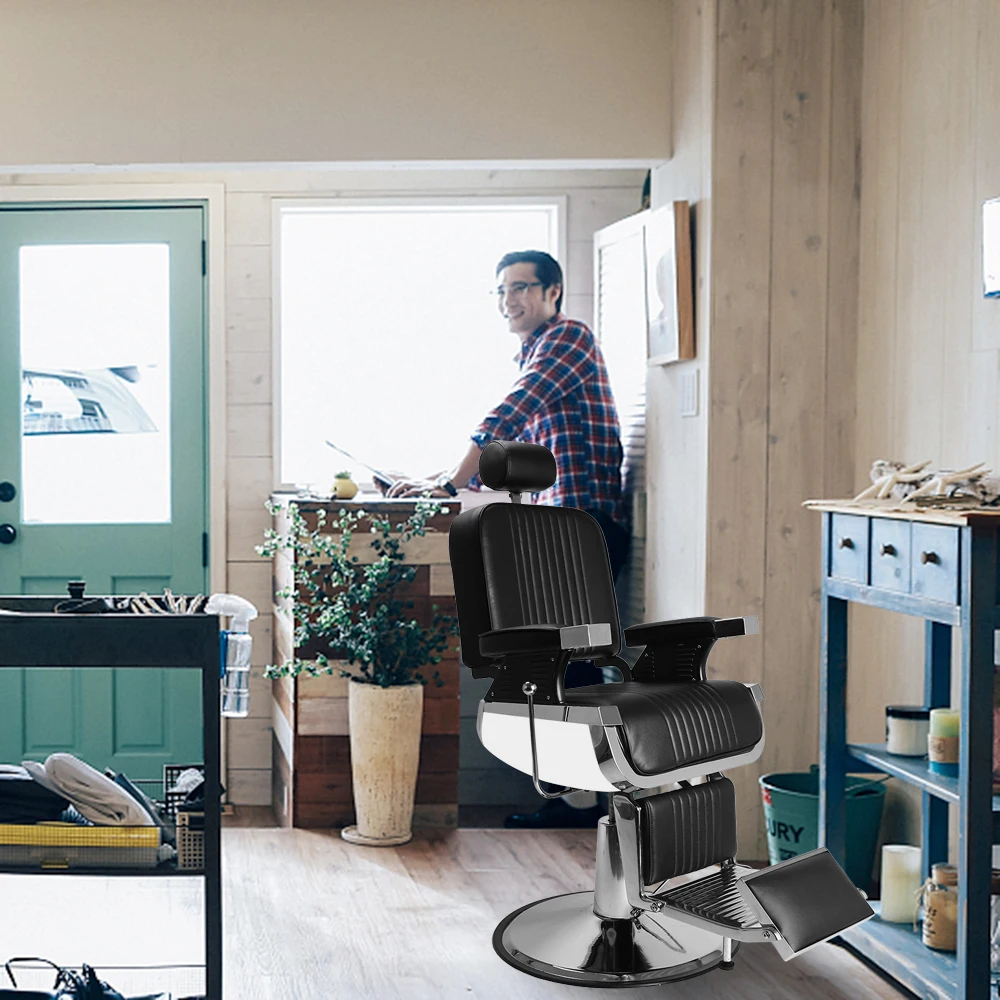 Crafted for durability, this barber chair boasts a robust build, ideal for commercial salons.