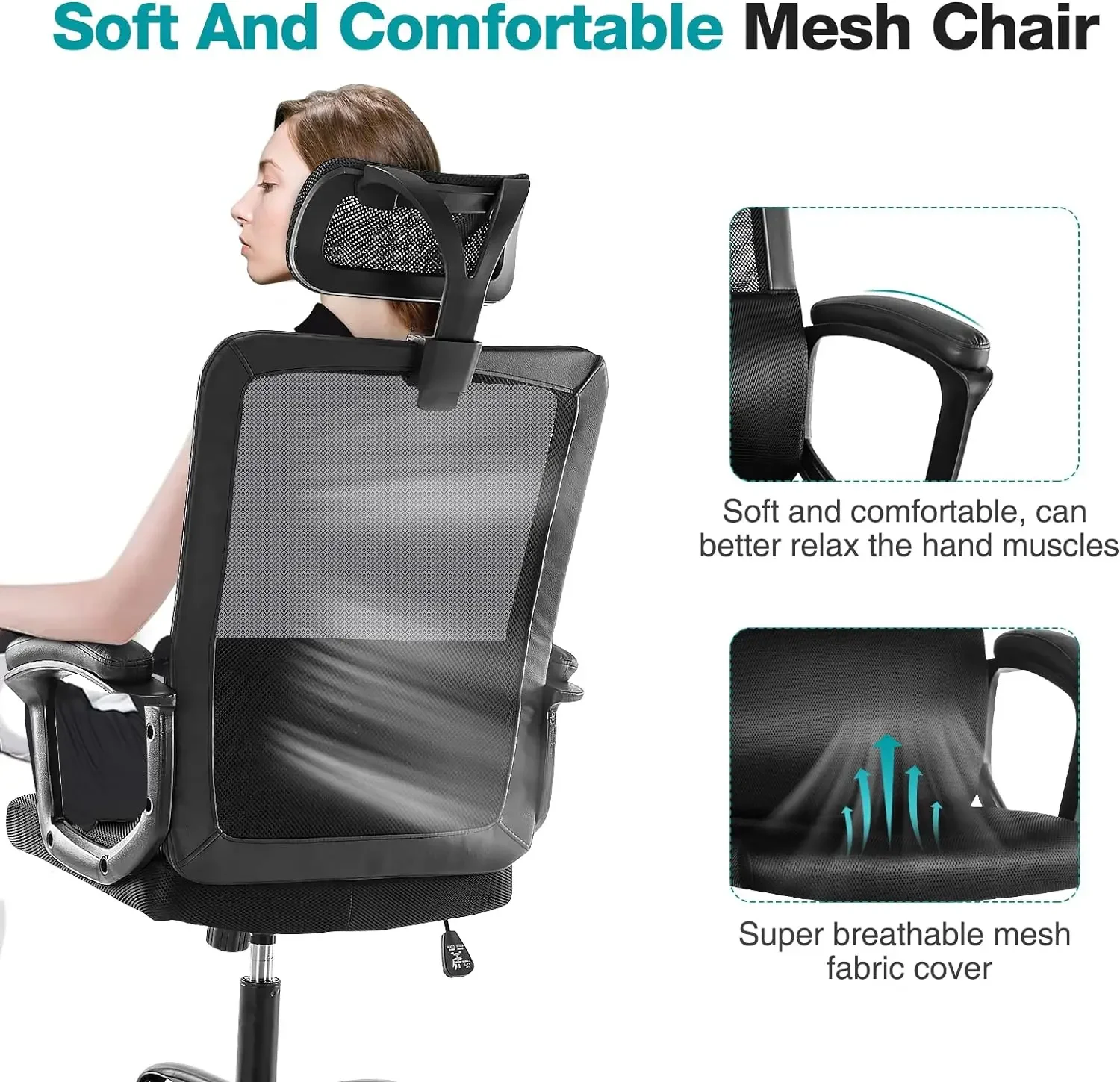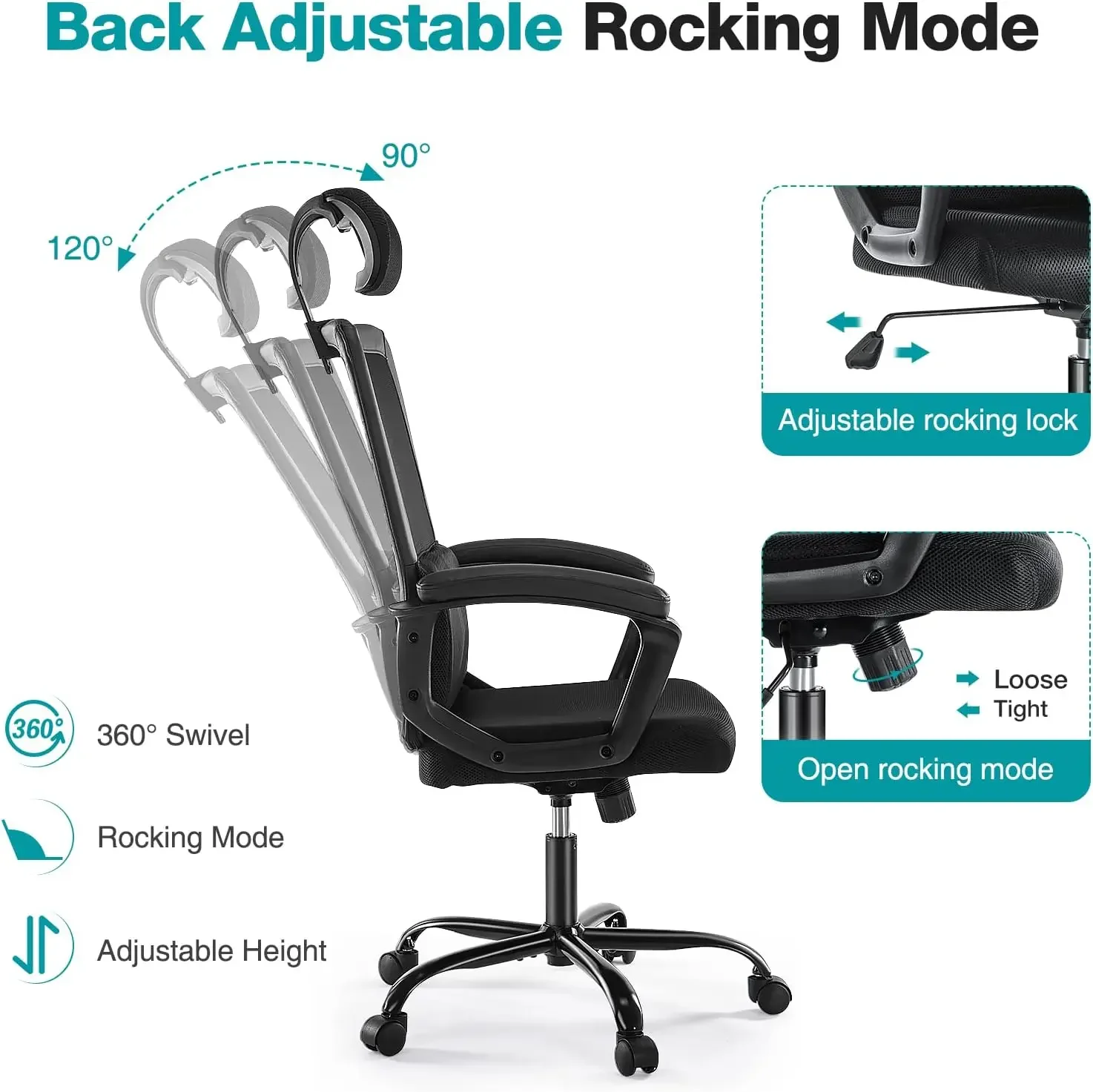 Office Chair Ergonomic Computer Desk Chair Mesh High Back Adjustable Height Executive Task Chair with Lumbar Support, Headrest, Padded Armrest, 360° Swivel Rocking Function