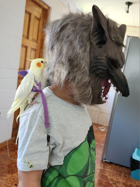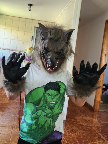 My son is charming! The mask is small for an adult, but I fit him perfectly (my son is 7 years old and 1,30 meters), the gloves if they are bigger, releases many hairs but the mask is well preserved. The material of the face is thin, however, resistant and according to my son does not suffocate.