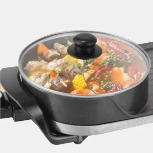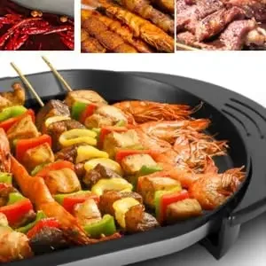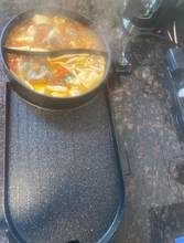 The grill with a hot pot (separated design, can cook two different flavors of hot pot at the same time, to meet the needs of different groups of people) is very convenient, you can enjoy the fun of grilling while eating hot pot, and can also be used for frying steak or stir-frying.