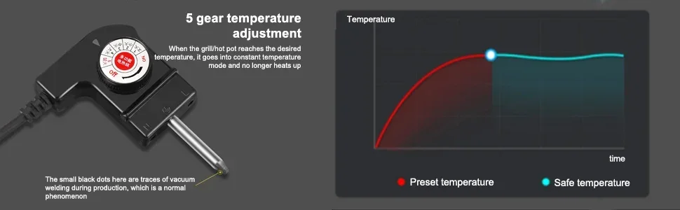 Independent Power Supply + 3 ModesSeparate design of hot pot power supply and grill pan power supply, temperature can be controlled separately |