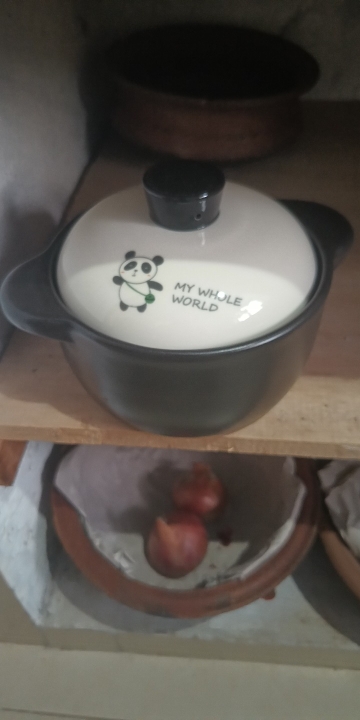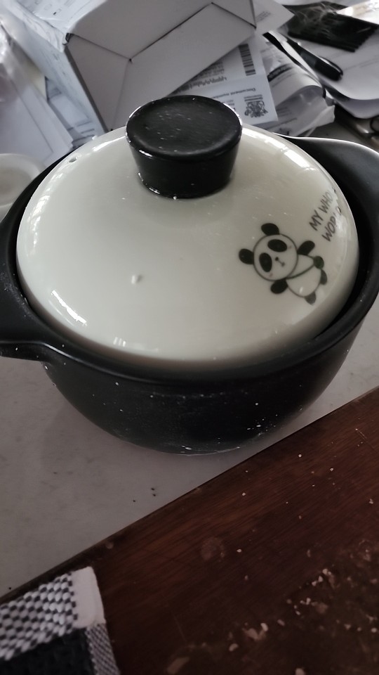 Very beautiful the pot and it is ceramic porcelain. I liked the phrase that is written on the lid, my whole world