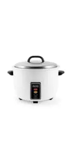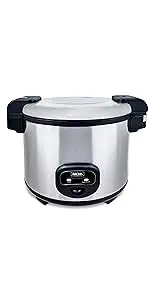 this convenient cooker’s generous Capacity perfectly cooks up to 60 Cups of any variety of rice. It automatically senses when rice is done and switches to keep-warm for fresh rice all day. The durable cool-touch body and heavy-duty stainless steel lid and aluminum cooking pot are designed for continuous use so you can count on batch after batch of flawless rice coming out of your kitchen.