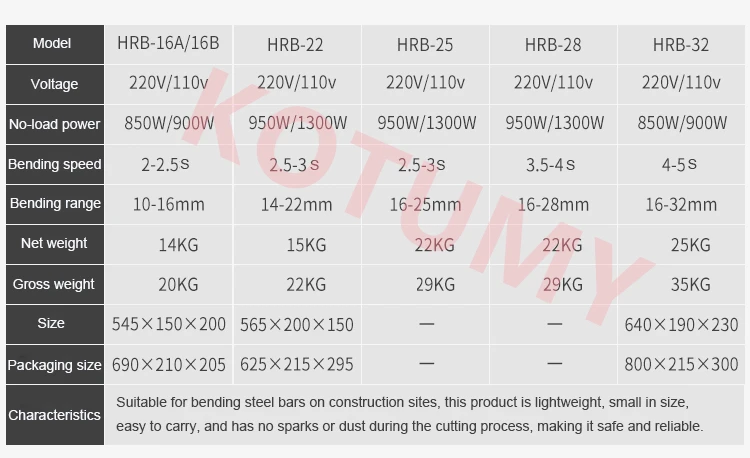 Product model: HRB-22 steel bar bending machine