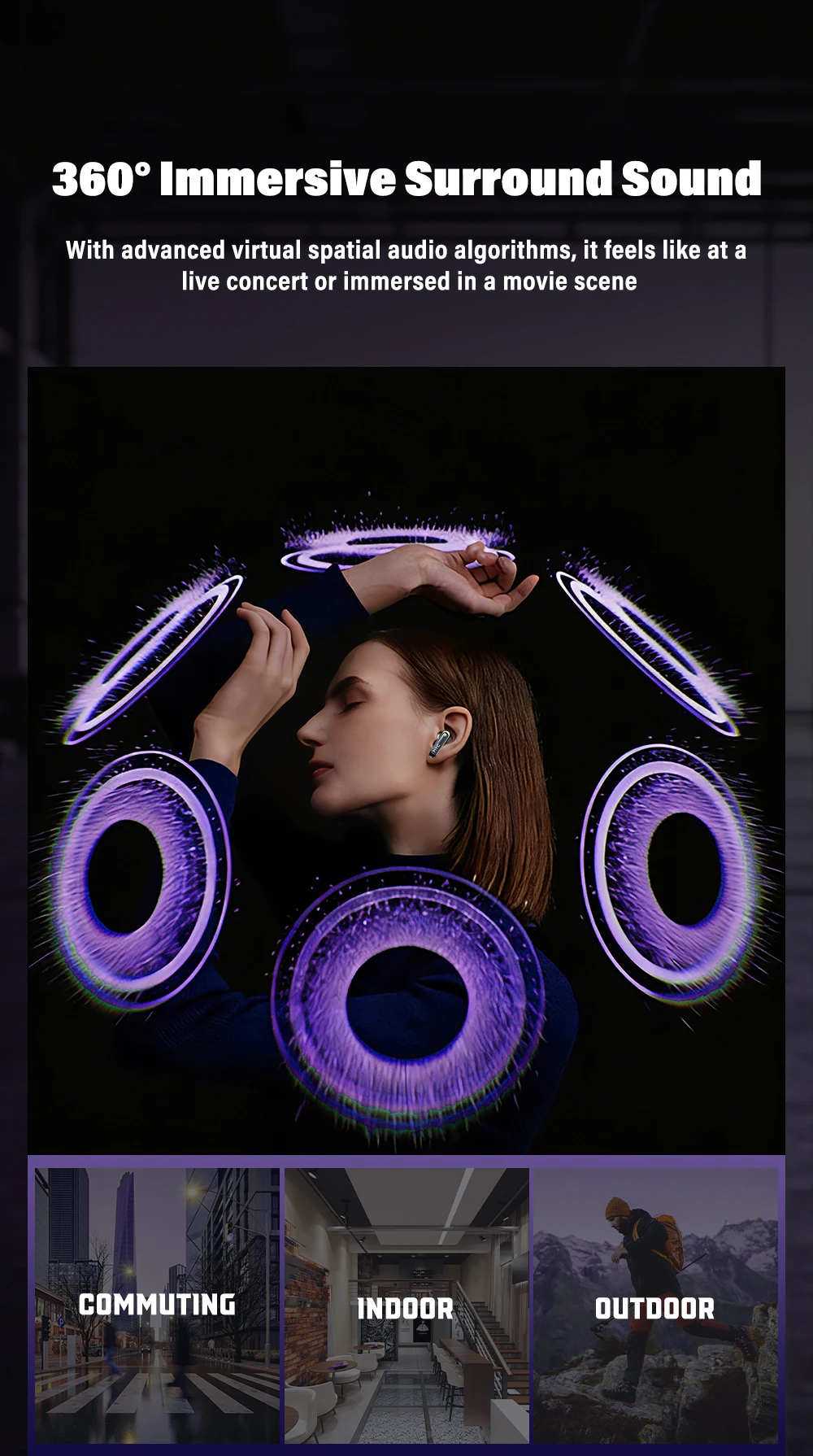 Spatial audio + surround sound: Restores 3D stereo sound when watching movies or playing games for a more realistic experience