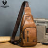 HUMERPAUL Men’s Usb Chest Bag 100% Genuine Leather Crossbody Shoulder Bags Multifunction Travel Outdoor Messenger Pack Fashion